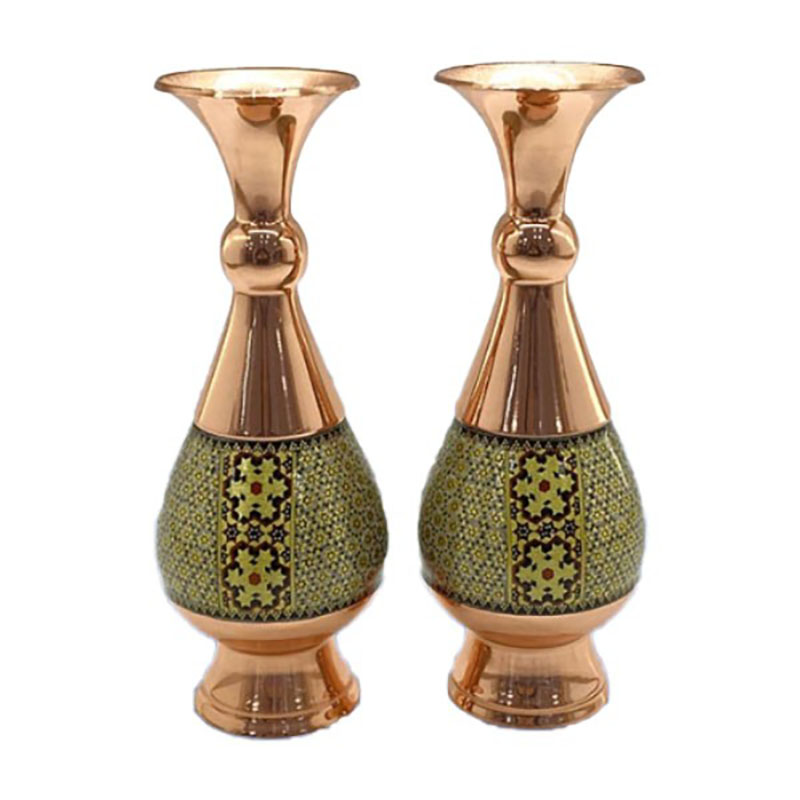 ست دو گلدان صراحی مس و خاتم کاری شالدار20 سانت