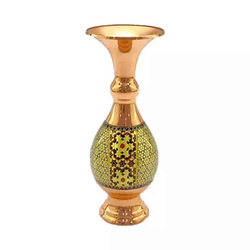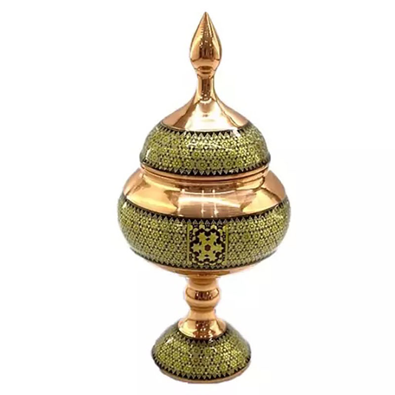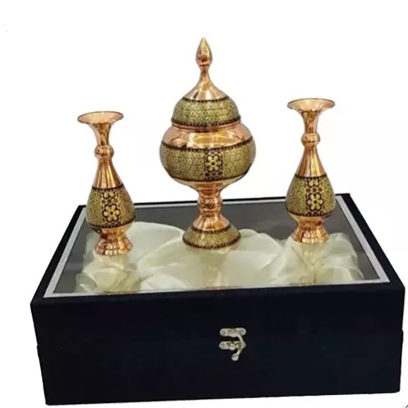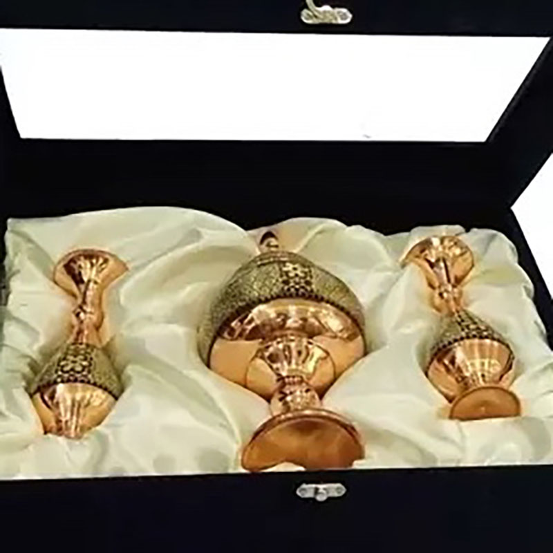 جنس ظروف مس و خاتم از فلز مس بوده که بر روی آن خاتم اصل اصفهان چسبانده شده است. استفاده از خاتم اعلا و متریال باکیفیت باعث افزایش طول عمر و ماندگاری فوق العاده در ظروف مس و خاتم شده است. سایز بندی ظروف مس و خاتم به شما امکان استفاده آنها را در چیدمان های مختلف خواهد داد. ظروف مس و خاتم برای زیباسازی فضاهای دکوری در نظر گرفته می شود. از این رو می تواند با دیگر محصولات دکوری ست گردد. محصولات مس و خاتم اصفهان از محصولات هنری صنایع دستی نفیس ایرانی بشمار می رود. فلز مس مورد استفاده در این محصولات ضخامت بالا و مناسبی دارد و به شکل نهایی محصول جلوه خاصی بخشیده است. این محصول دارای لایهای محافظ با پلیاستر است که علاوه بر پوششدهی مناسب سطح مس و جلوگیری از اکسید و سیاه شدن، مقاومت آن را نیز بالا برده است. بسیاری از شرکت ها و سازمان ها بمنظور تهیه هدایای تبلیغاتی سالیانه خود از محصولات مس و خاتم اصفهان استفاده می کنند. قبل از سفارش طرح مورد نظرتون رو استعلام بگیرید و با اطمینان خرید کنید.