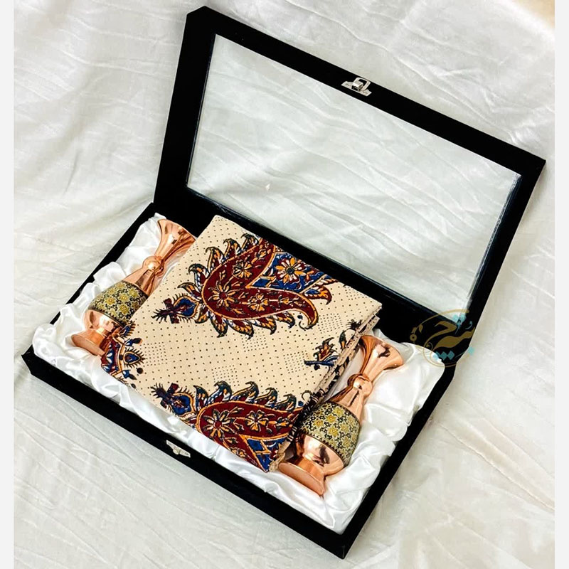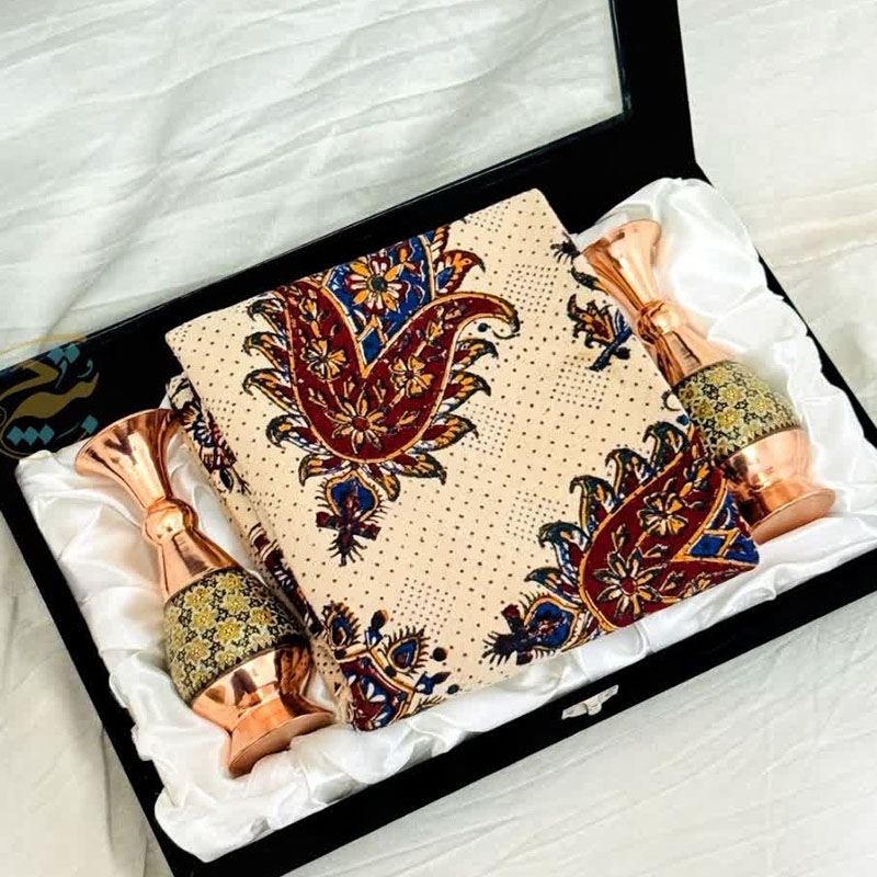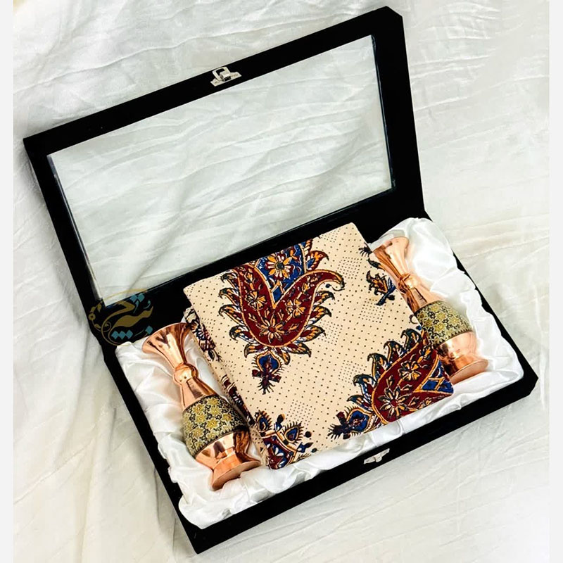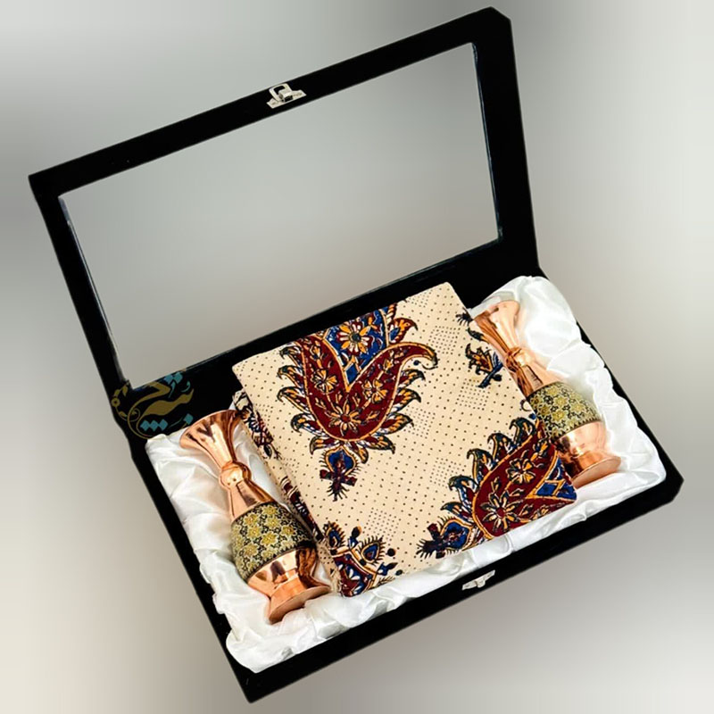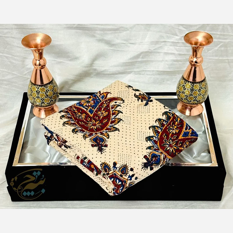 ست هدیه ترمه و گلدان مسی مدل پرداز 20 با جعبه