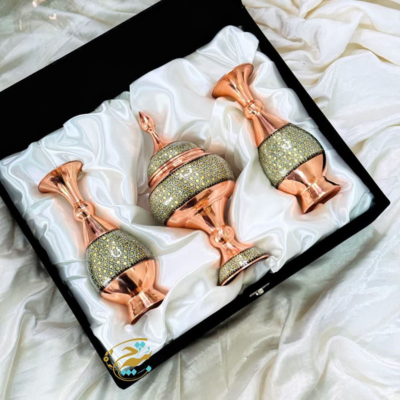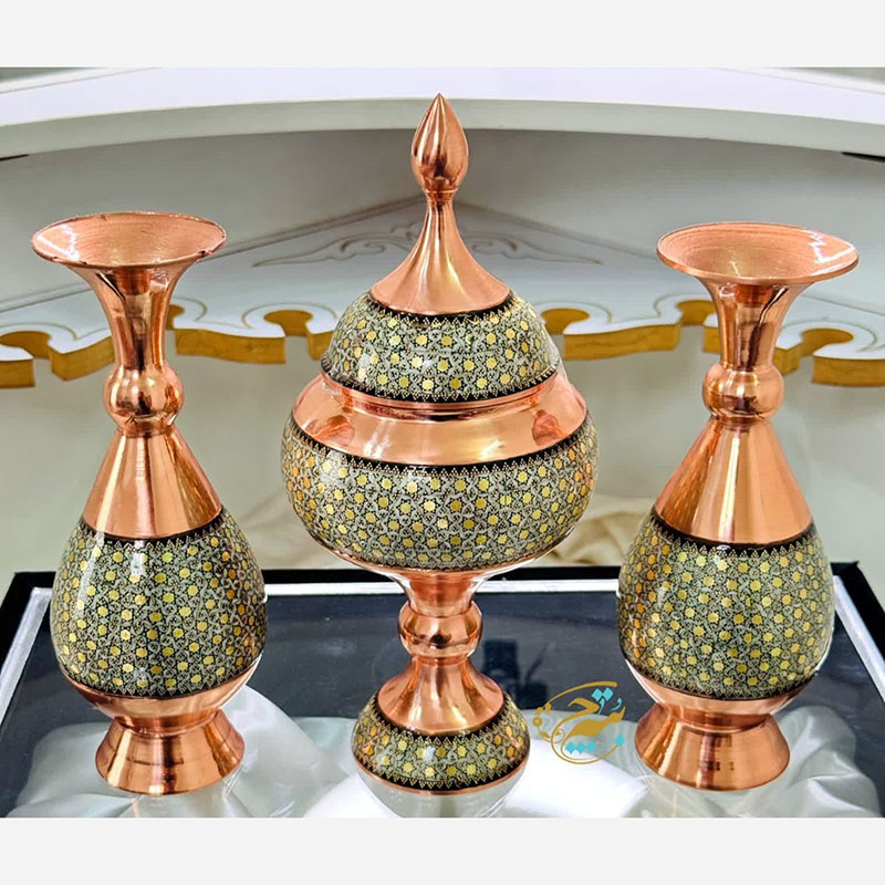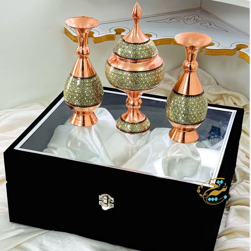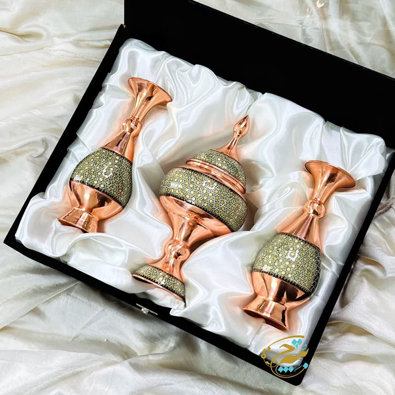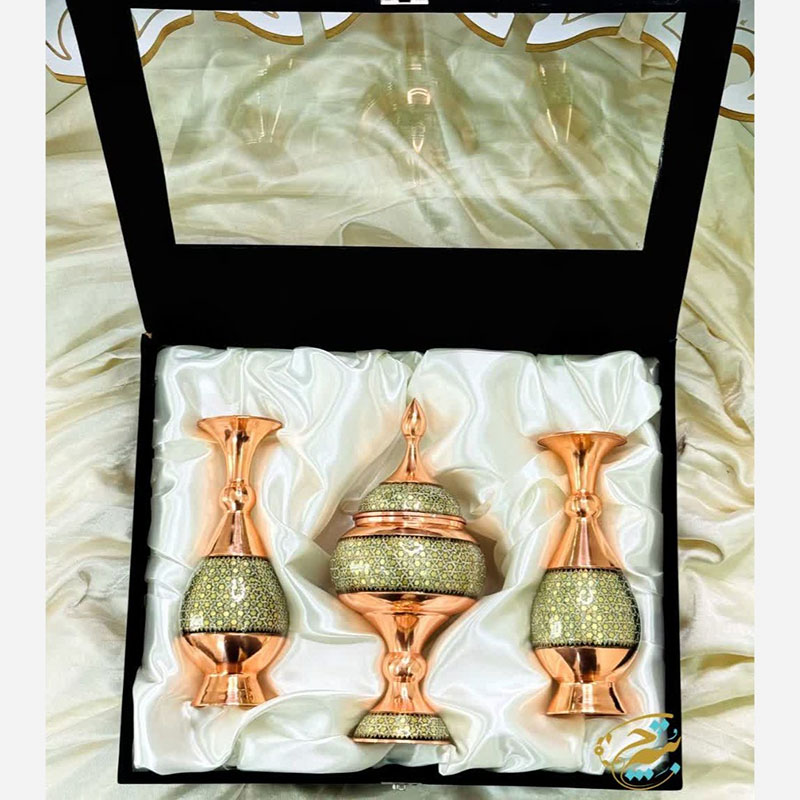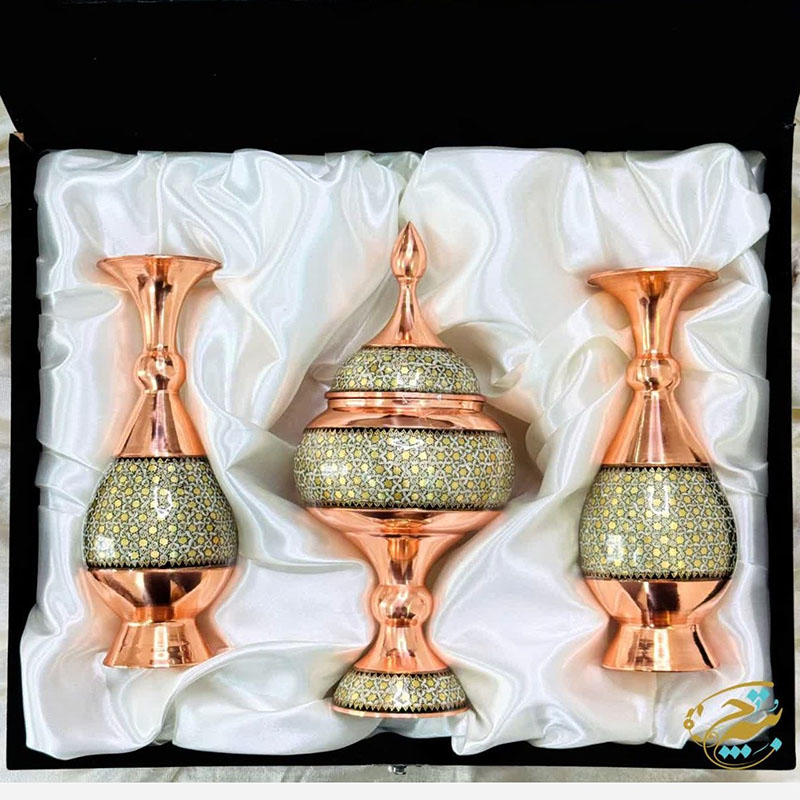 ست هدیه خاتم کاری گلدان و شکلات خوری با جعبه مخمل