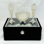 ست هدیه ظروف نقره ملیله کاری قندان و گلدان 18 – ملیلهکاری اصفهان، اثری دستساز از هنرمندان اصفهانی با ظرافت بالای ملیلهکاری، مناسب برای دکوراسیون لوکس و هدیهای ماندگار.