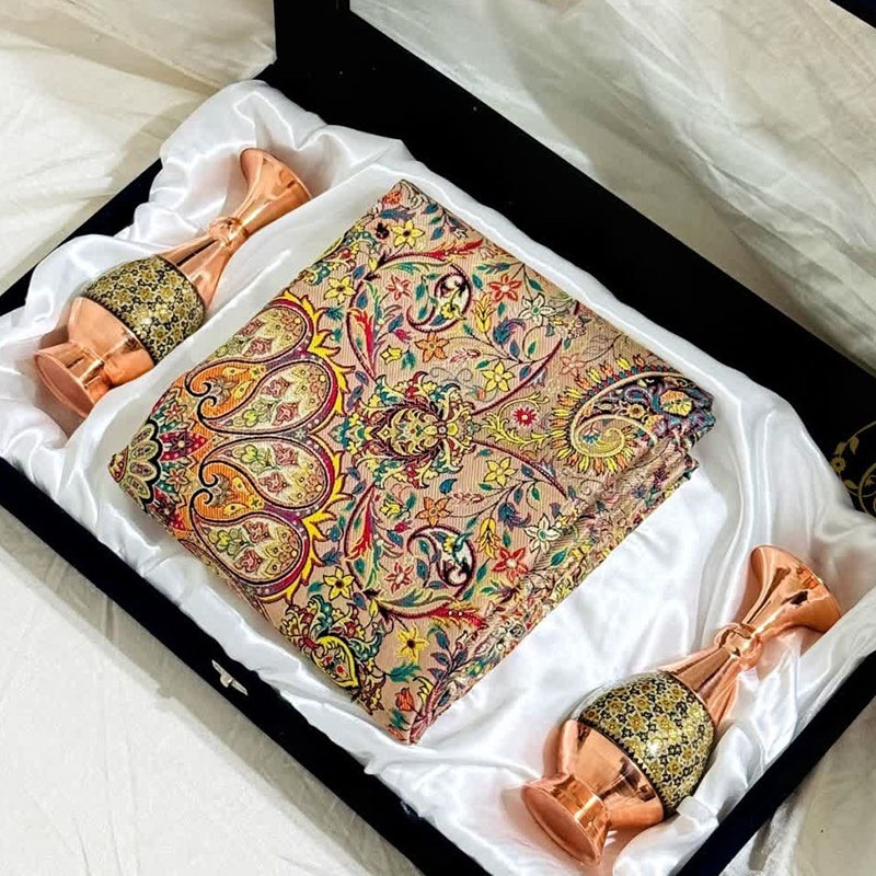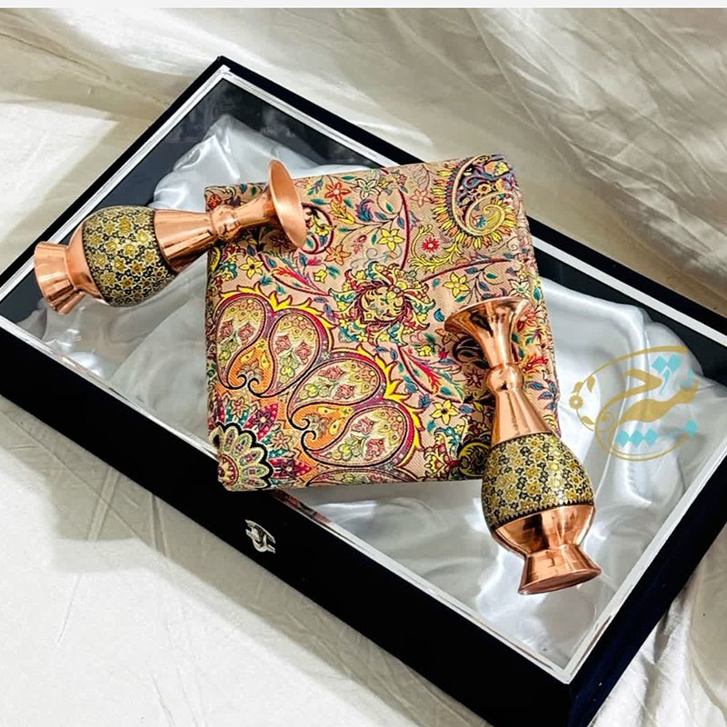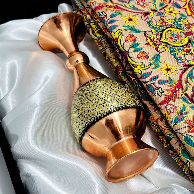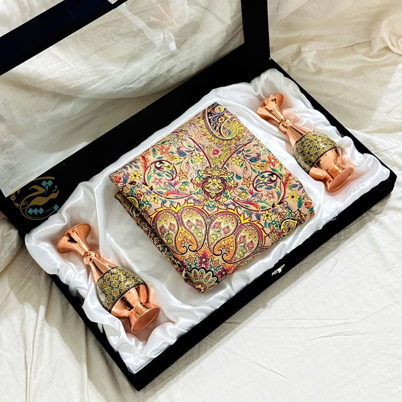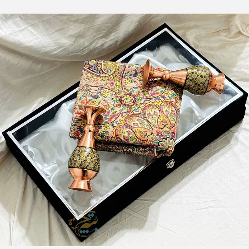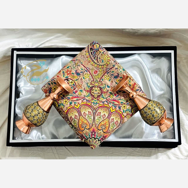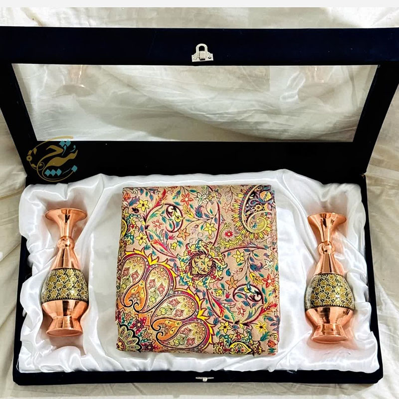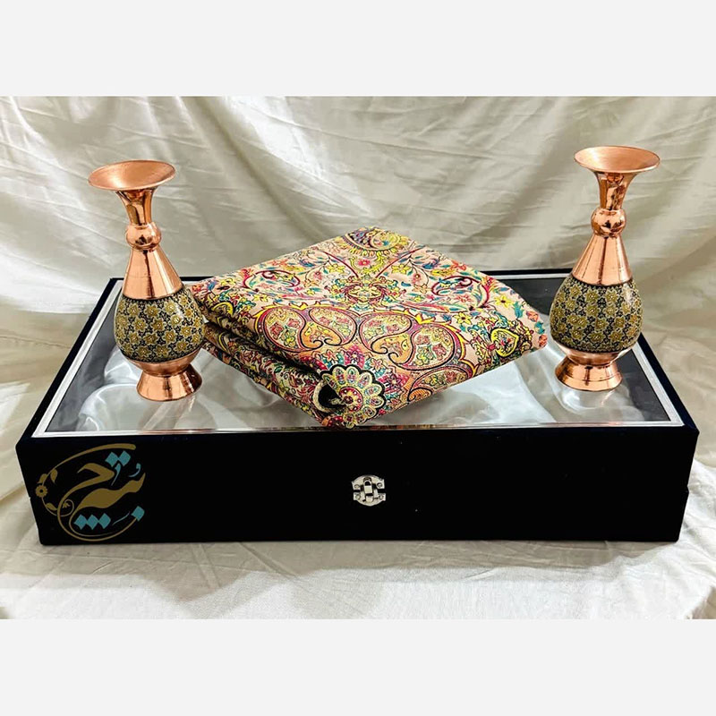 ست هدیه مس و خاتم کاری ترمه و گلدان 20