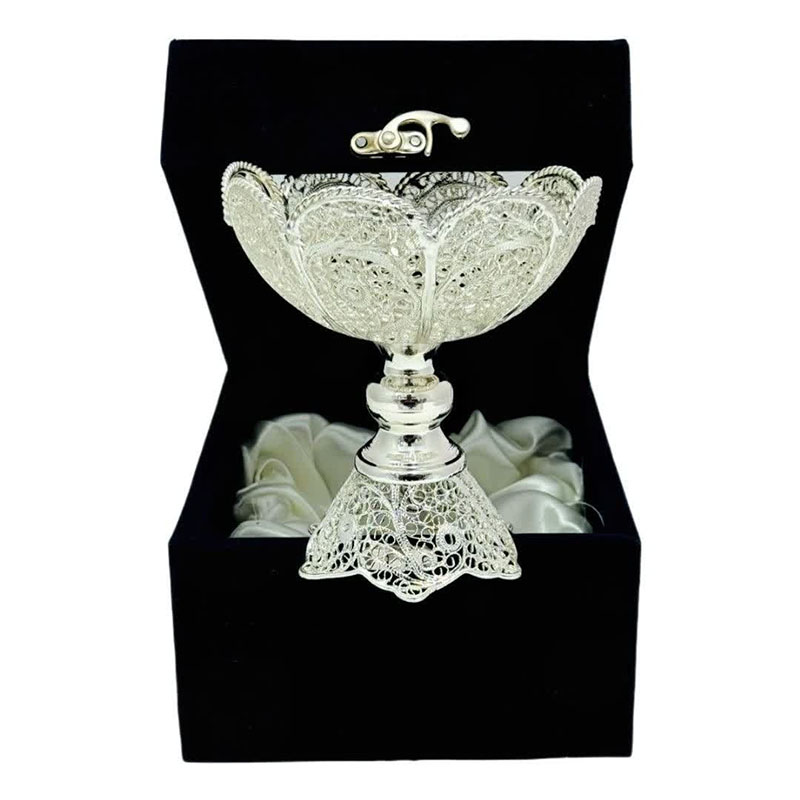 ست هدیه ملیله کاری کاسه آجیل خوری نقلی لبه گرد پایه دار