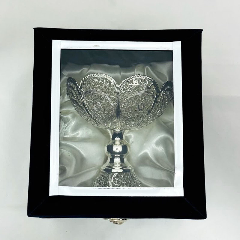 ظروف ملیله کاری اصفهان، اثری هنری و نفیس از دستان هنرمندان چیره دست اصفهانی است. این ظروف زیبا، با ظرافت و دقت فراوان ملیله کاری شده و جلوه‌ای بی‌نظیر به دکوراسیون منزل شما می‌بخشد. به همراه ضمانت نامه 48 ماهه ارائه میشود‌ و دارای شناسنامه هنری است.