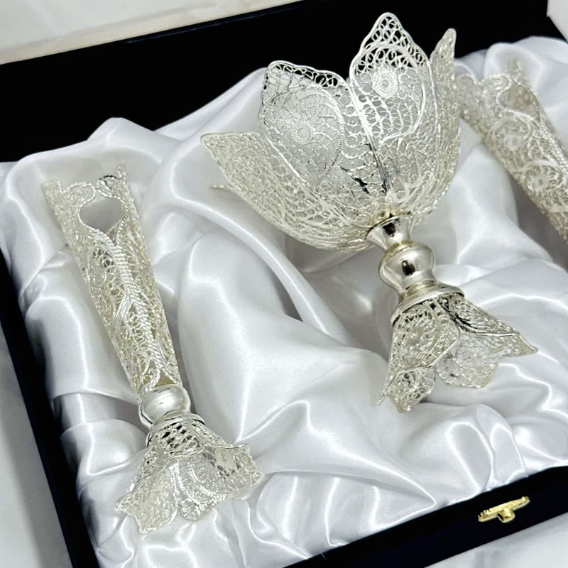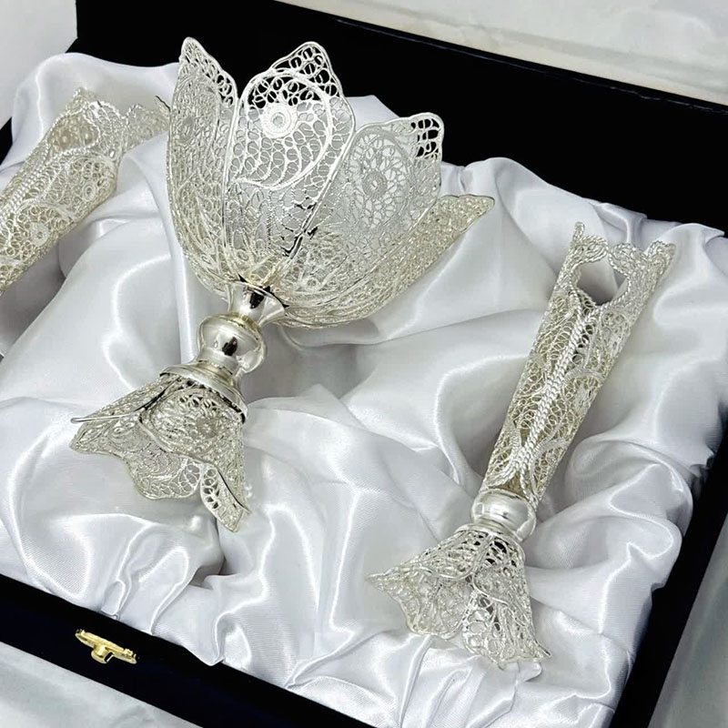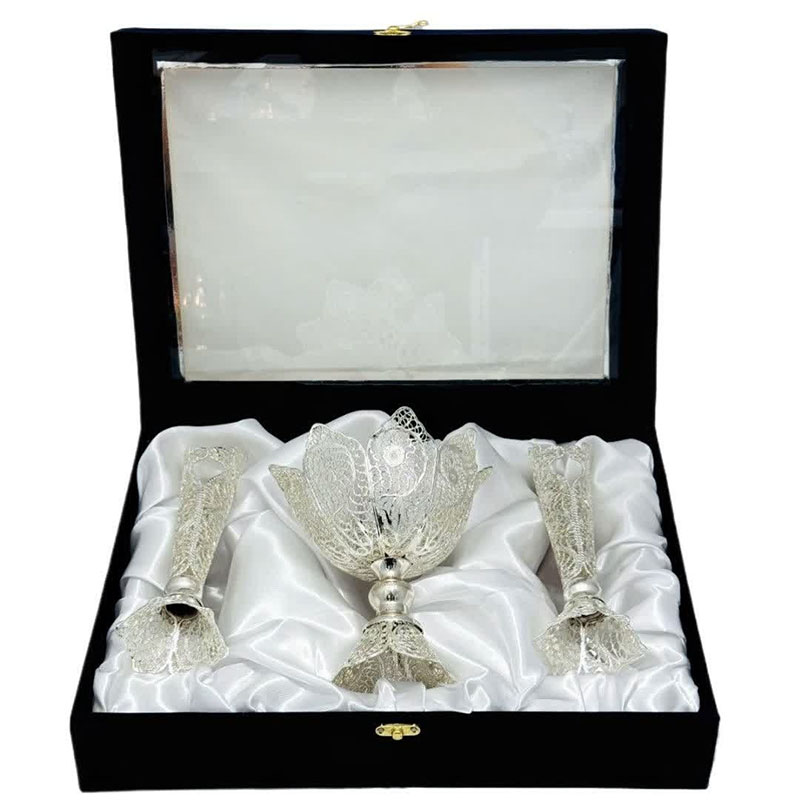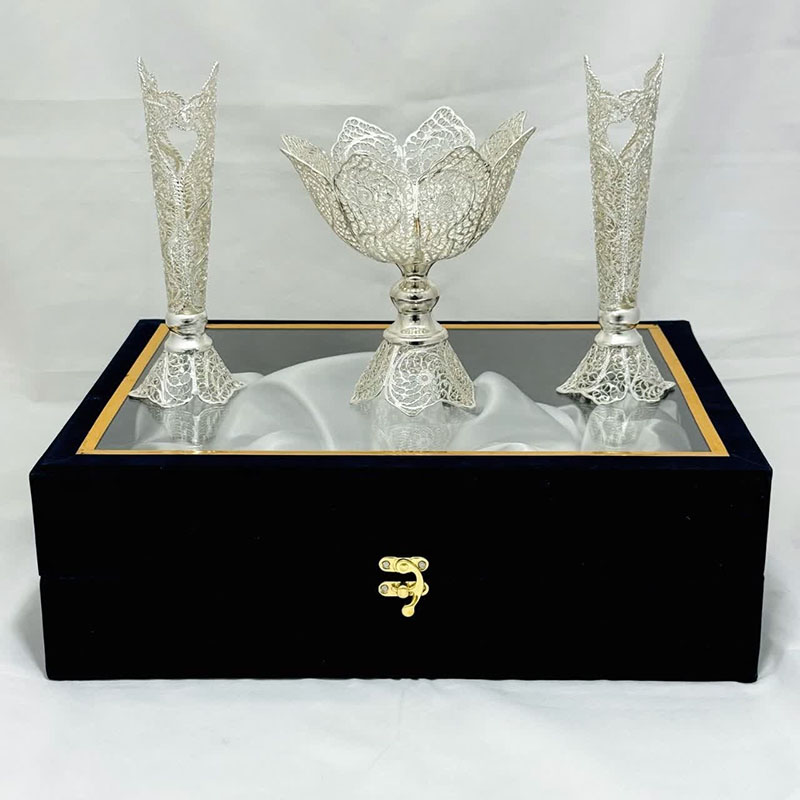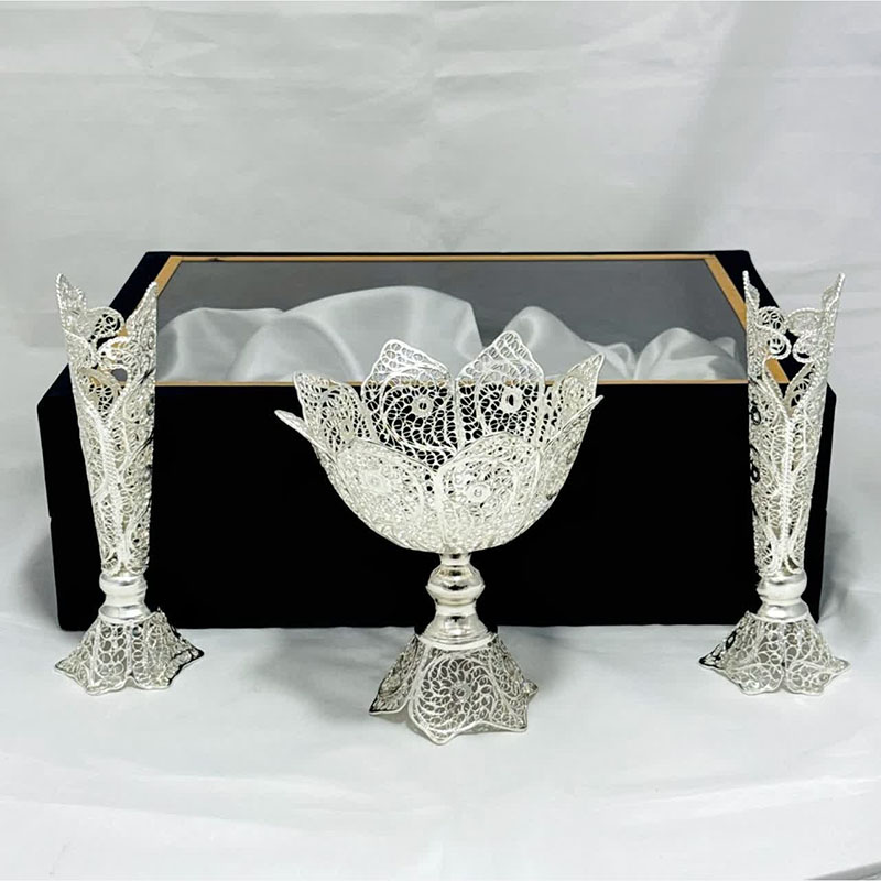 ست هدیه نقره گلدان ملیله کاری و آجیل خوری