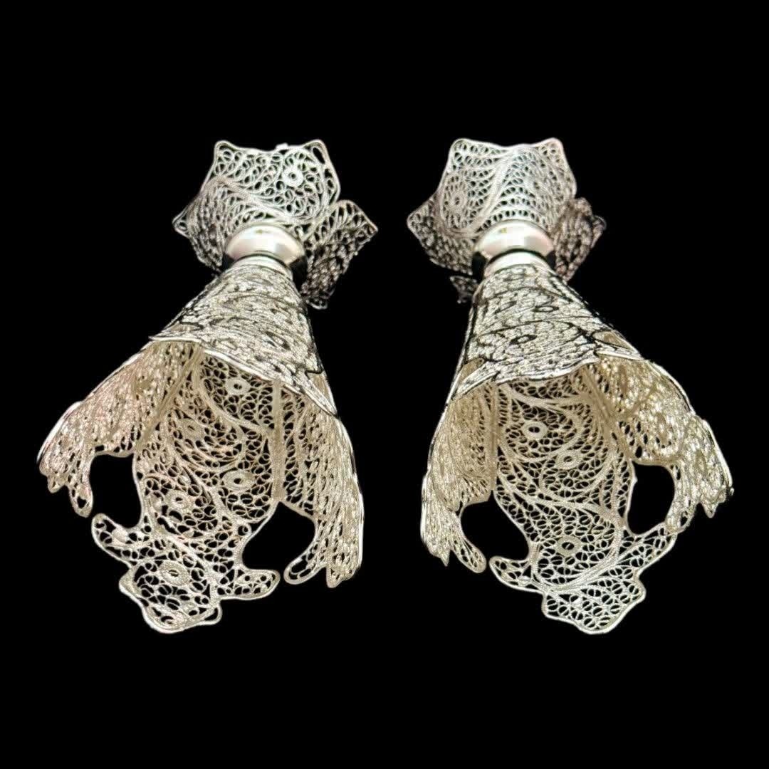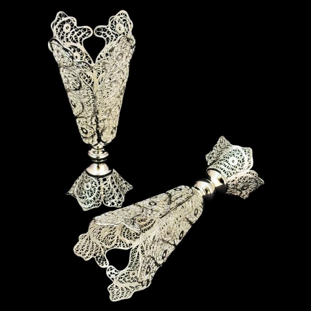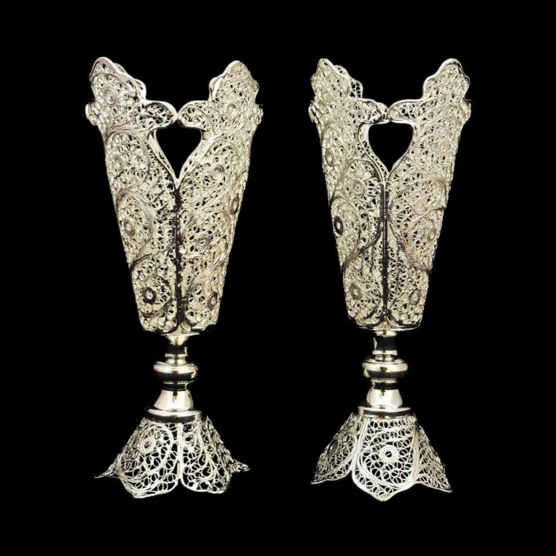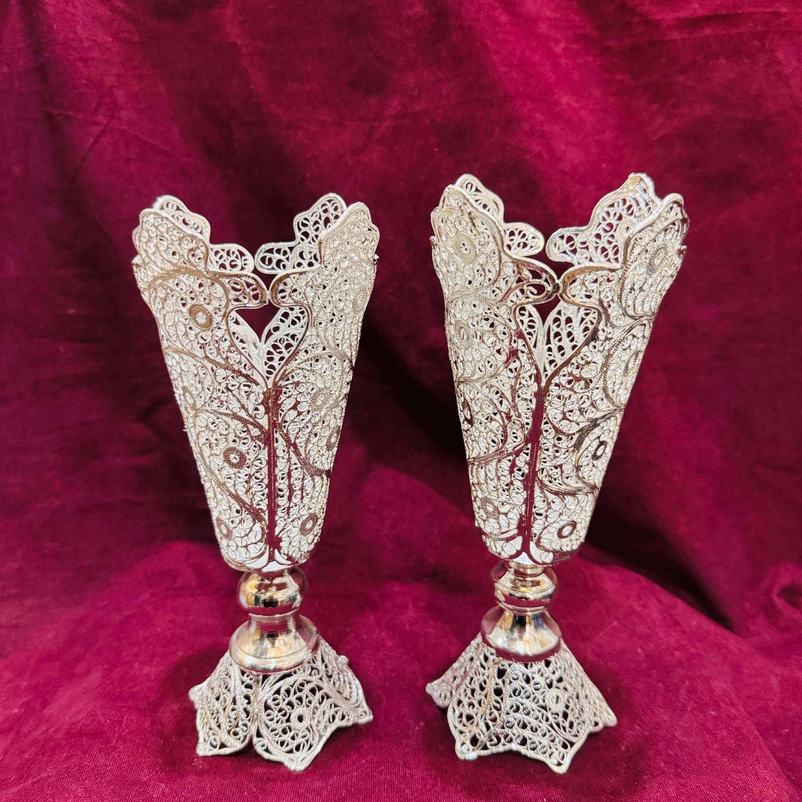 نکته : قیمت برای دو گلدان و اجیل خوری و جعبه مخمل دست ساز میباشد. ملیلهکاری، هنر ظریف و زیبای ساخت اشیاء تزئینی از مفتولهای نازک مس با روکش نقره است که ریشه در تاریخ و فرهنگ اصفهان دارد. محصولات ملیلهکاری با طرحهای پیچیده و چشمنواز، جلوهای خاص به دکوراسیون منزل میبخشند و میتوانند به عنوان هدیهای ارزشمند مورد استفاده قرار گیرند. کیفیت ملیلهکاری تولیدی بُته چی به دلیل استفاده از مواد اولیه مرغوب و دقت بالای هنرمندان، از کیفیت بالایی برخوردار است و میتواند سالها زیبایی خود را حفظ کند. با خرید گلدان ملیله کاری اصفهان، شما نه تنها یک شیء زیبا و دکوری را به خانه خود اضافه میکنید، بلکه از هنر و هنرمندان ایرانی نیز حمایت میکنید. به علت دست ساز بودن تمامی محصولات امکان اختلاف سایز اندکی وجود دارد.