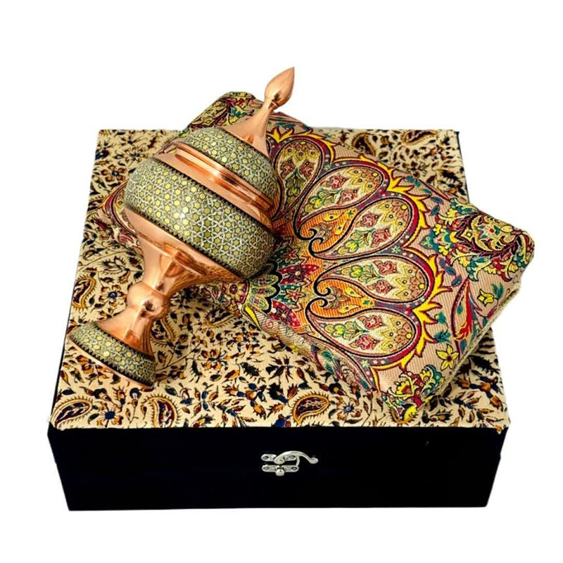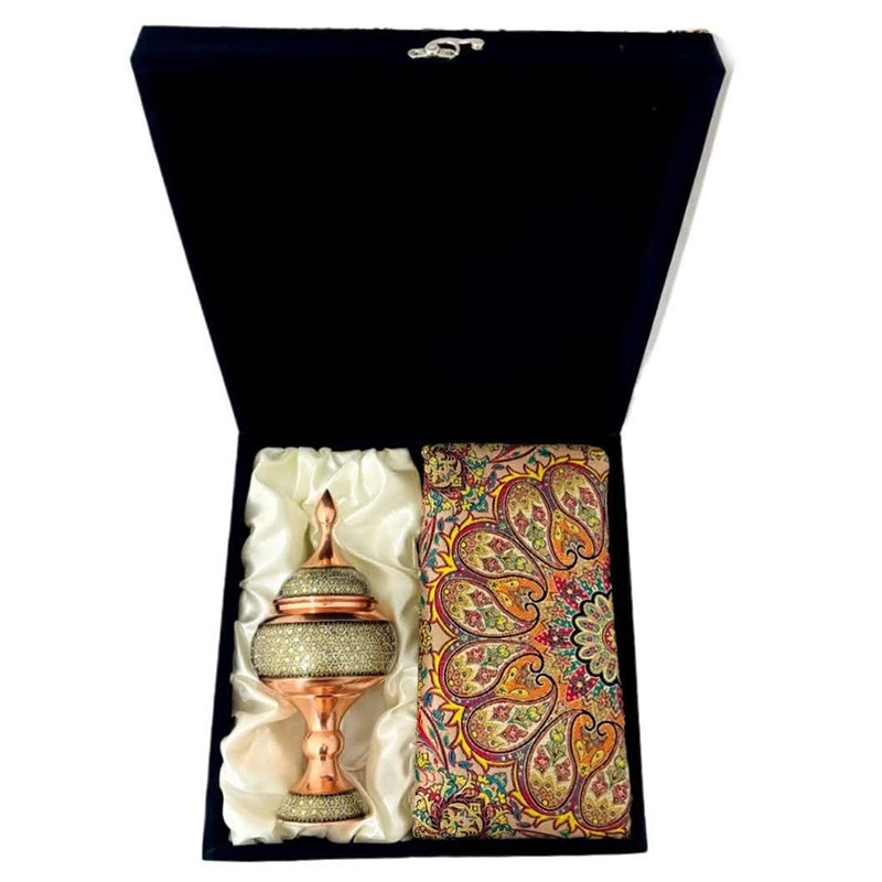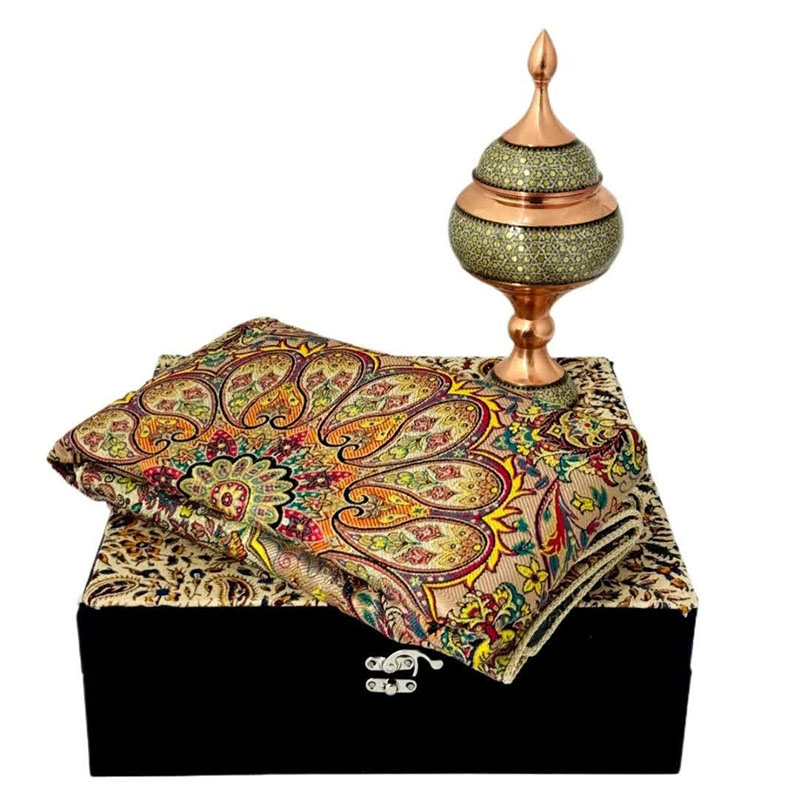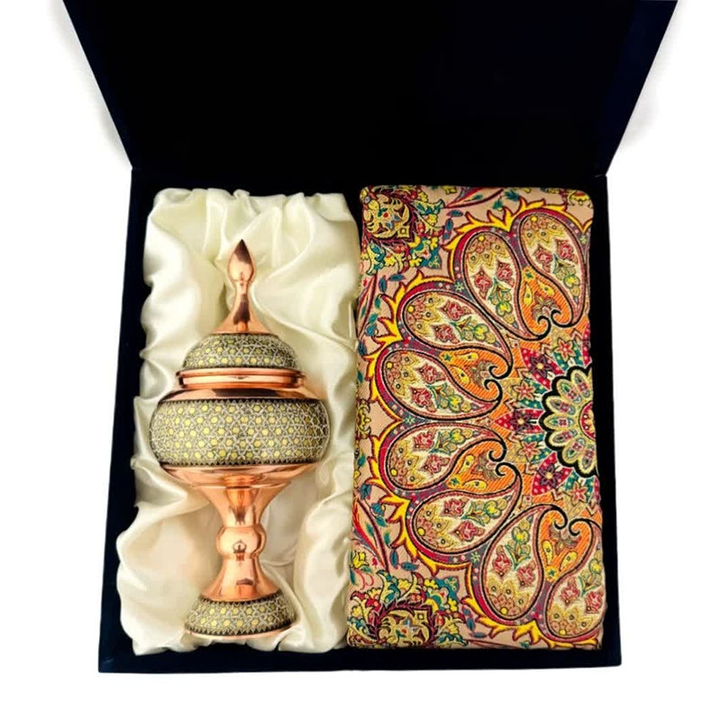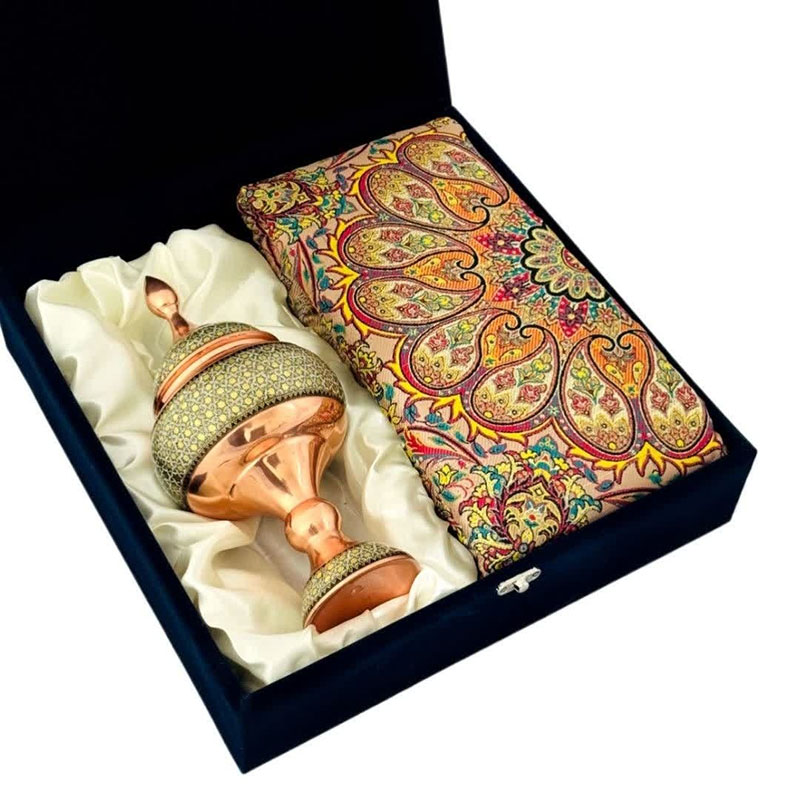 ست هدیه ترمه و گلدان مسی مدل پرداز 20 با جعبه