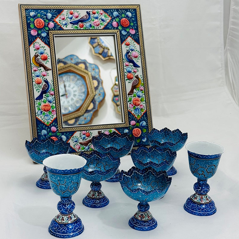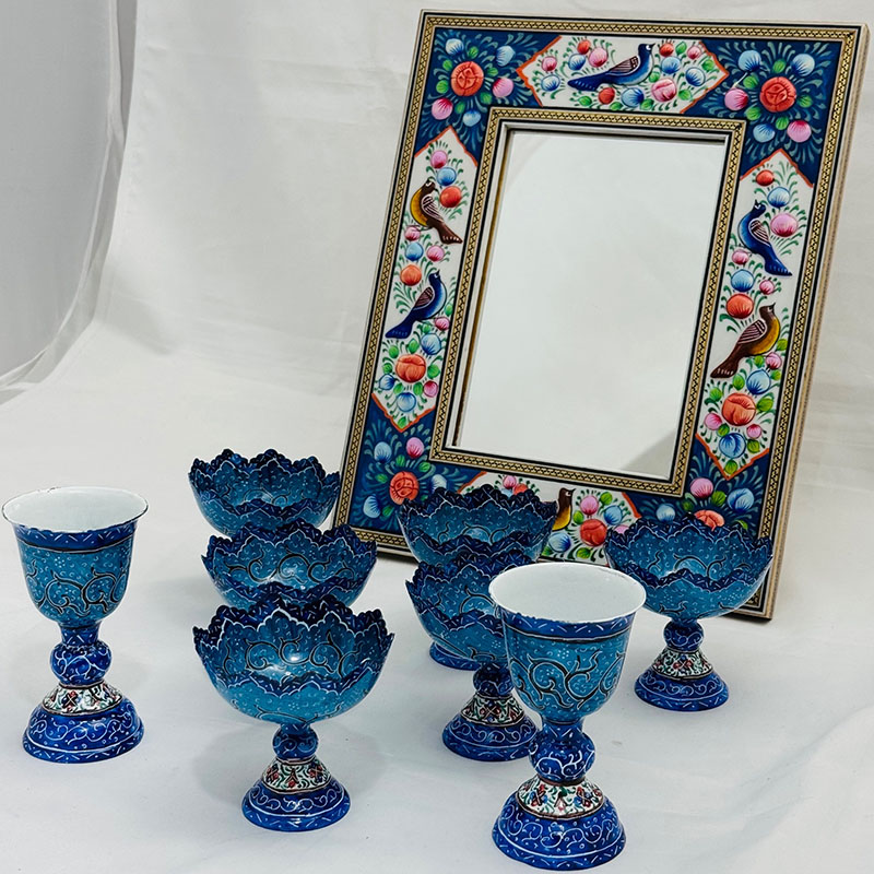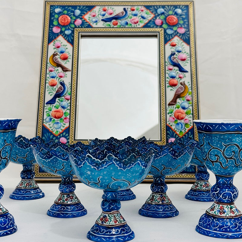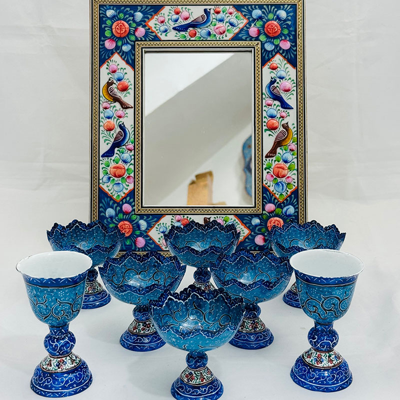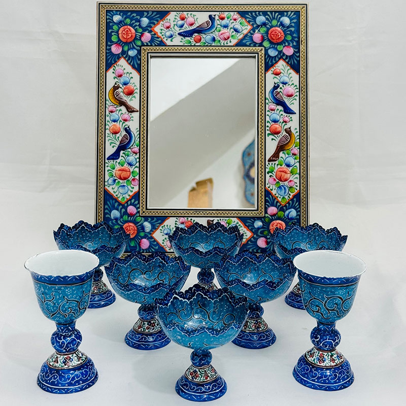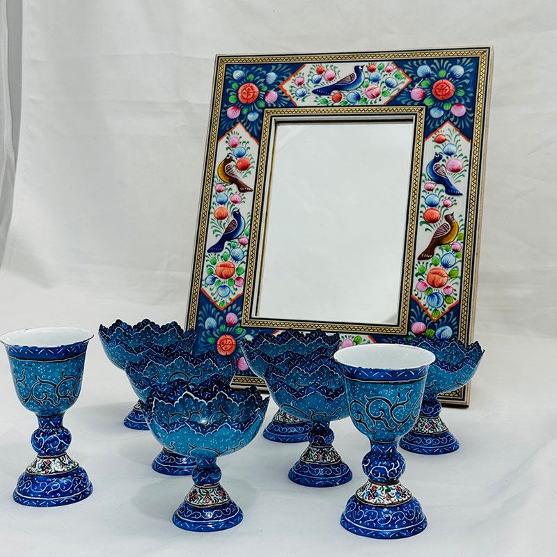 ست هفت سین میناکاری طرح برجسته گل و بلبل آبی