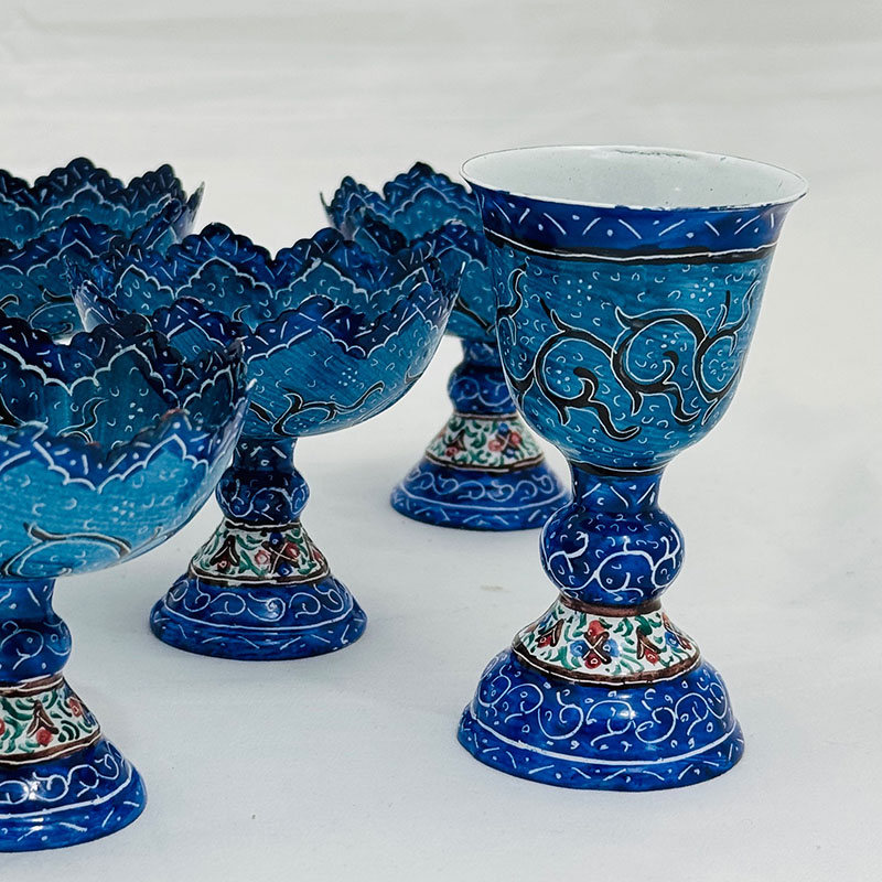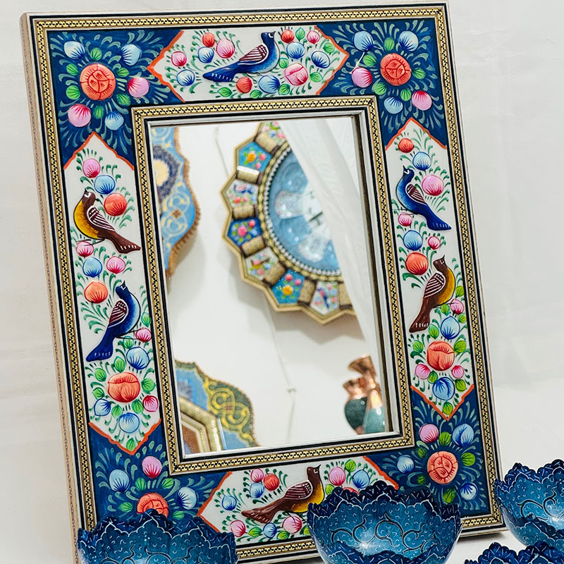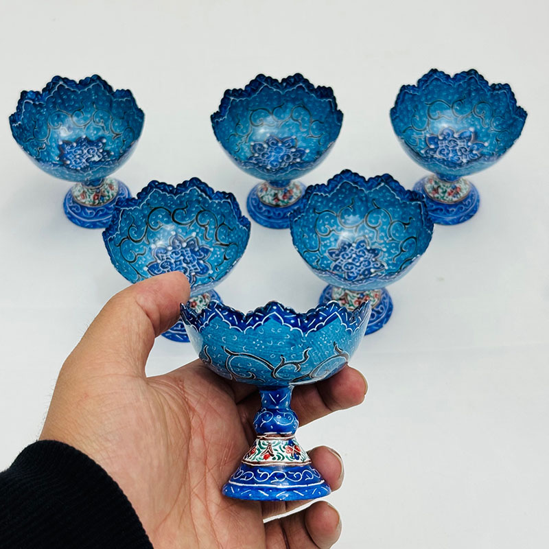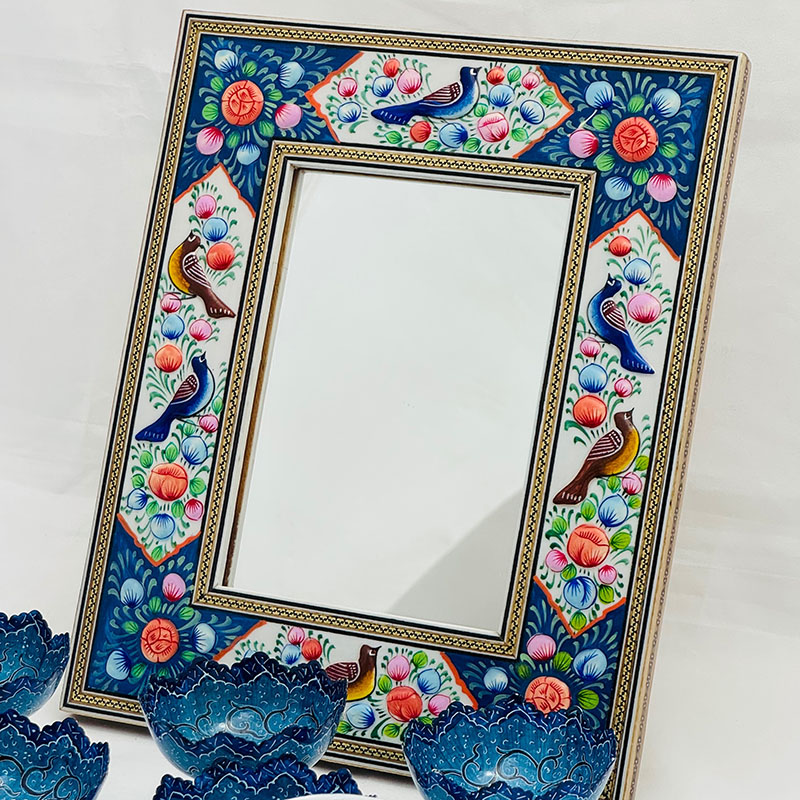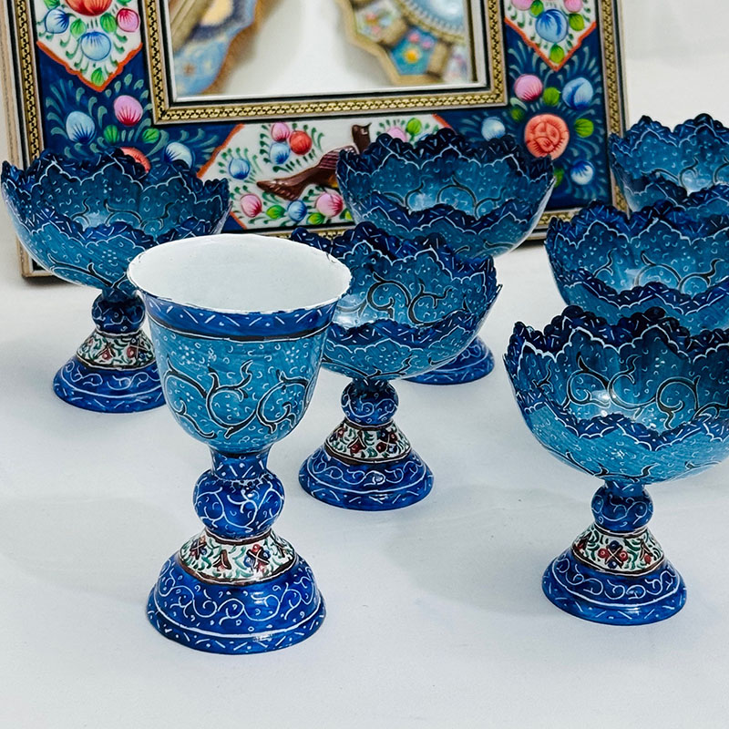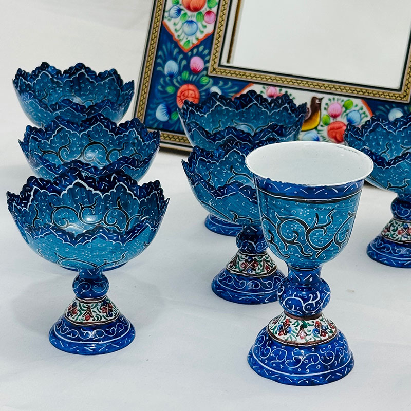ست هفت سین میناکاری طرح برجسته گل و بلبل آبی