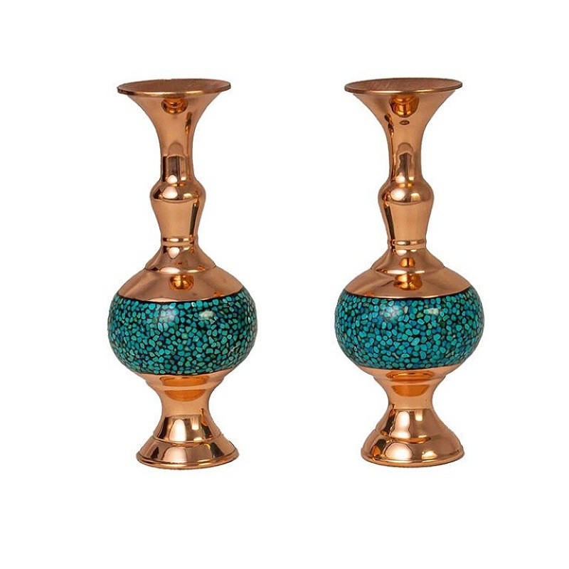 این کار نفیس فیروزه کوبی دارای پوششی از پلی استر است که علاوه بر پوشش‌دهی مناسب سطح مس و جلوگیری از اکسید و سیاه شدن، مقاومت آن را نیز بالا برده است.از آنجایی‌که پرداخت نهایی در تولید این کار ماهرانه و با دقت صورت گرفته،سطح مس و فیروزه براق، شفاف و درخشان است. فیروزه کوبی : فیروزه کوبی از صنایع دستی است و با نشاندن قطعه های کوچک سنگ فیروزه به حالت موزاییکی بر سطح ظرف ها ، زیورآلات و اشیای تزئینی ( از پایه هایی به جنس های مسی ، برنجی، نقره، ورشویی ویا برنزی) ساخته می شود . هر چه ظرف فیروزه کوبی شده پر کارتر و منظم تر باشد و فاصله کمتری بین قطعات فیروزه باشد ، ارزش هنری آن بیشتر است . امروزه اصفهان مرکزاین هنر است .