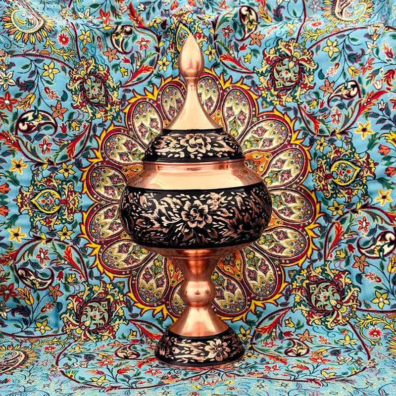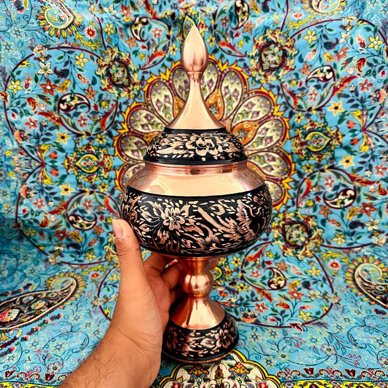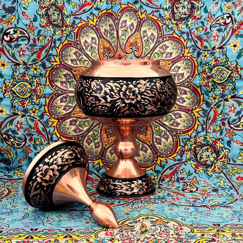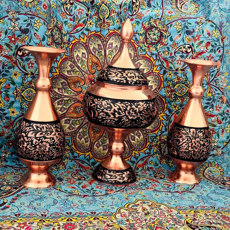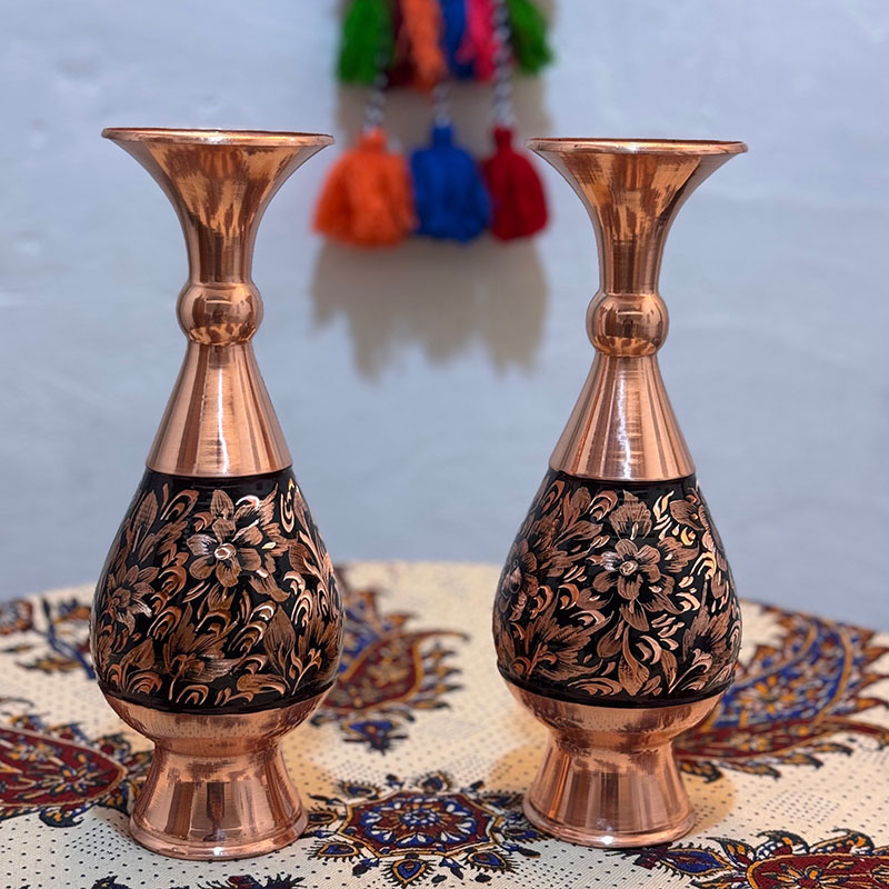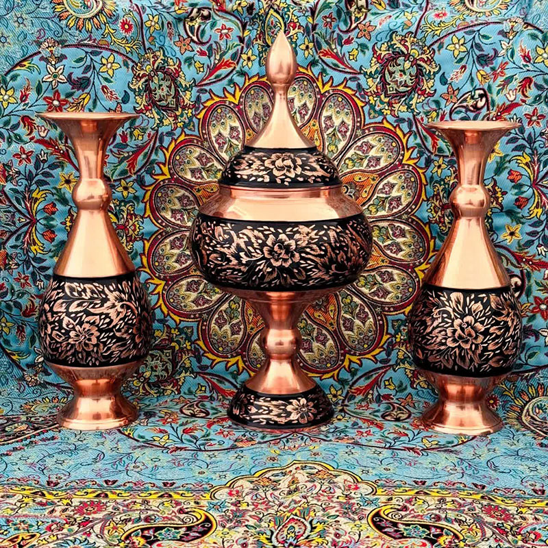ست هدیه جفت گلدان الماس تراش مسی و شکلات خوری ، هدیه ای خاص برای دوس داران صنایع دستی اصفهان میباشد. جفت گلدان مسی الماس تراش طرح گل و مرغ ارتفاع گلدان 25 سانت ارائه شده است و ارتفاع شکلات خوری 32 سانت میباشد در سایز های متنوع هم موجود است.