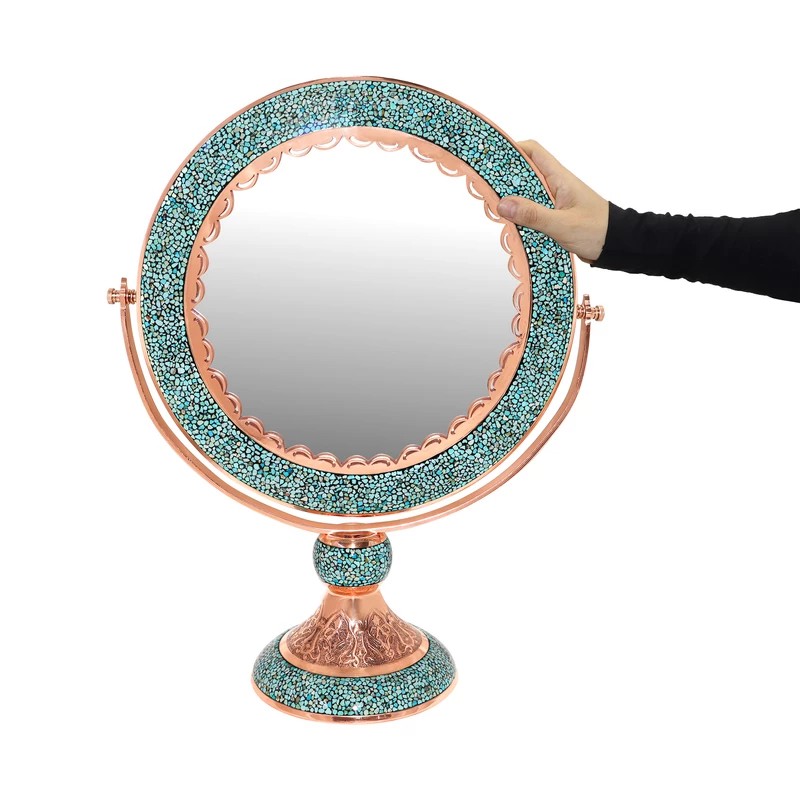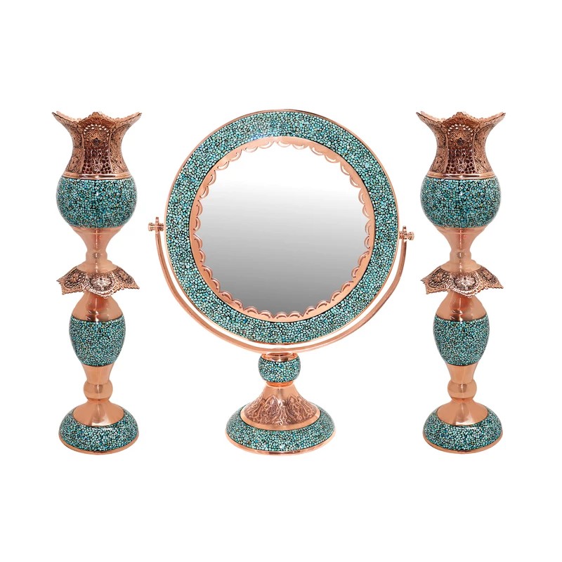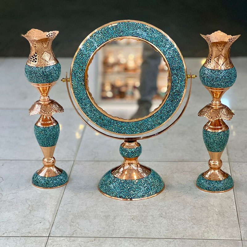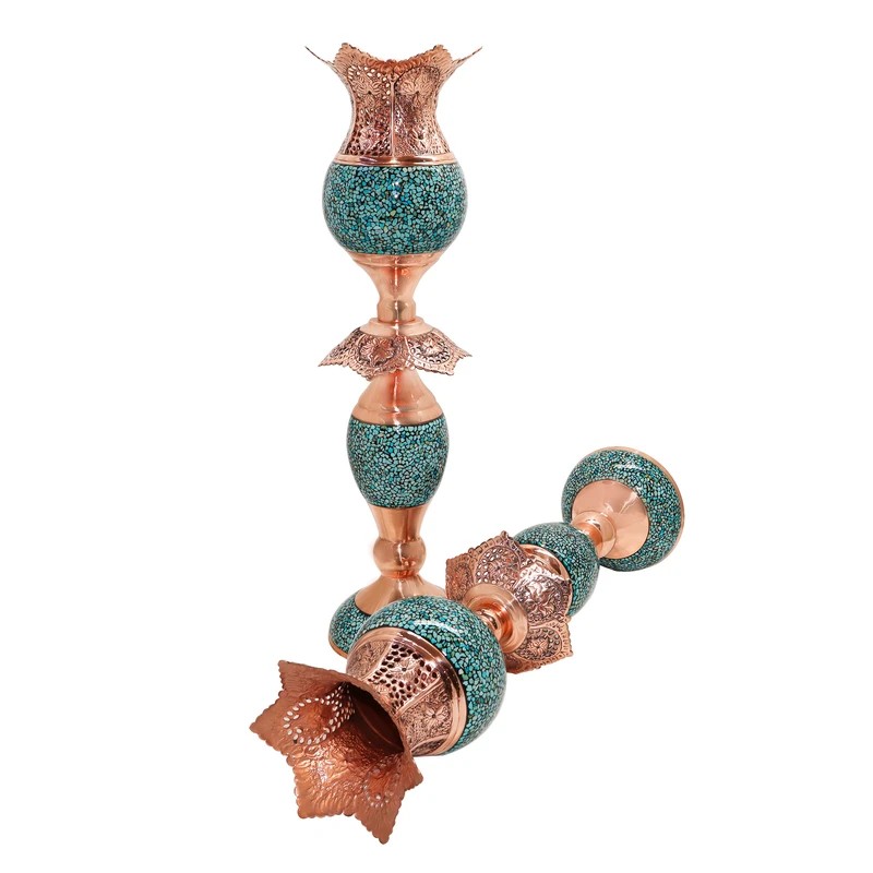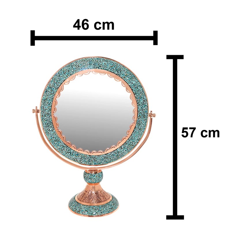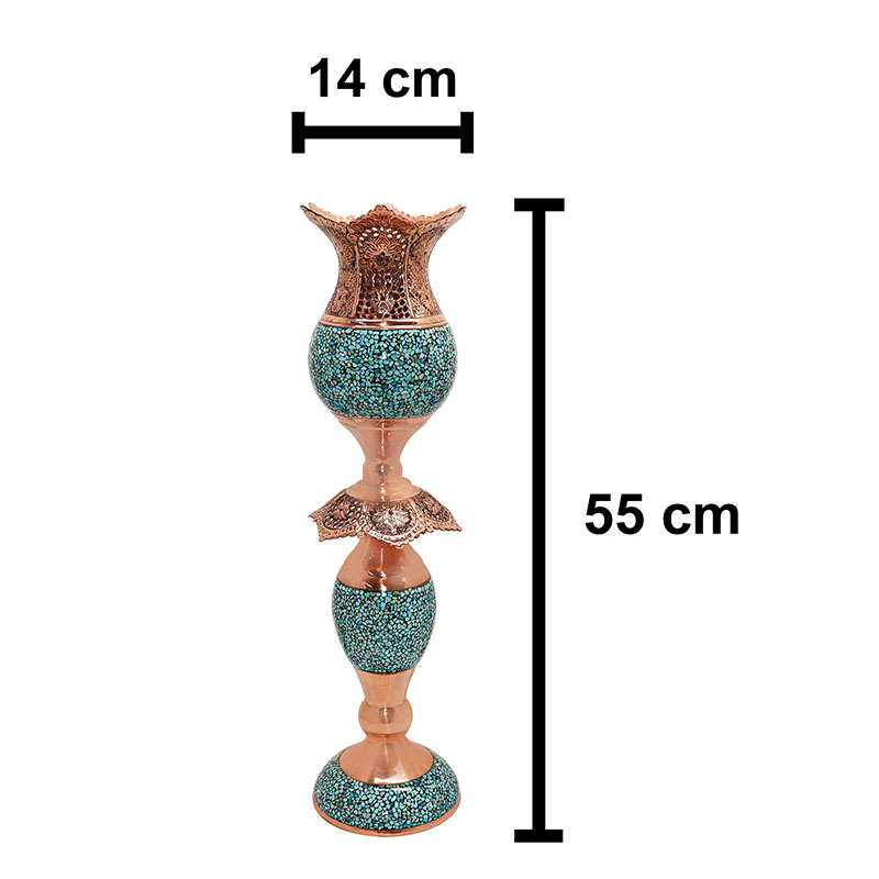 ابعاد اثر 69x21x57 سانتیمتر وزن 6080 گرم کاربرد تزئینی رومیزی کاربردی جنس قسمت داخلی بدنه مس جنس قسمت خارجی بدنه مس فیروزه