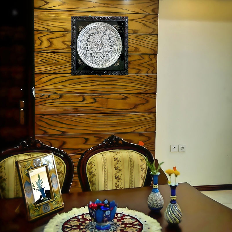 ☑️ جنس قاب از پلاستیک فشرده یا همان (pvc) می باشد. سینی داخلی قلمزنی بسیار ظریف است که به دست هنرمندان قلمزن کار شده است. ☑️این تابلو ها اثر دست هنرمندان قلمزن در اصفهان می باشد و نقوش زیبایی با قلم و چکش با دقت و مهارت خاصی بر روی آن ایجاد شده است. ☑️قیمت تابلو ها با توجه به ظرافت و هنر به کار رفته و همچنین مدل سینی استفاده شده و سایز آنهامتغیر است. ☑️سفارش انواع سینی قلمزنی شده با سایز دلخواه و سفارشی شما به صورت عمده ایی و خرده فروشی و با توجه به قیمت و بودجه شما مهیا می گردد .