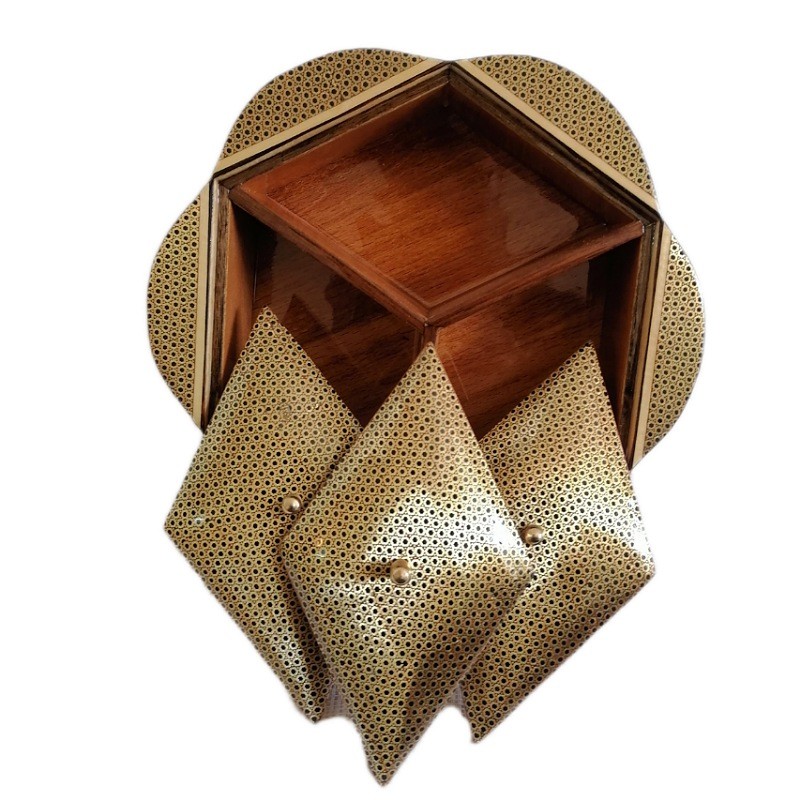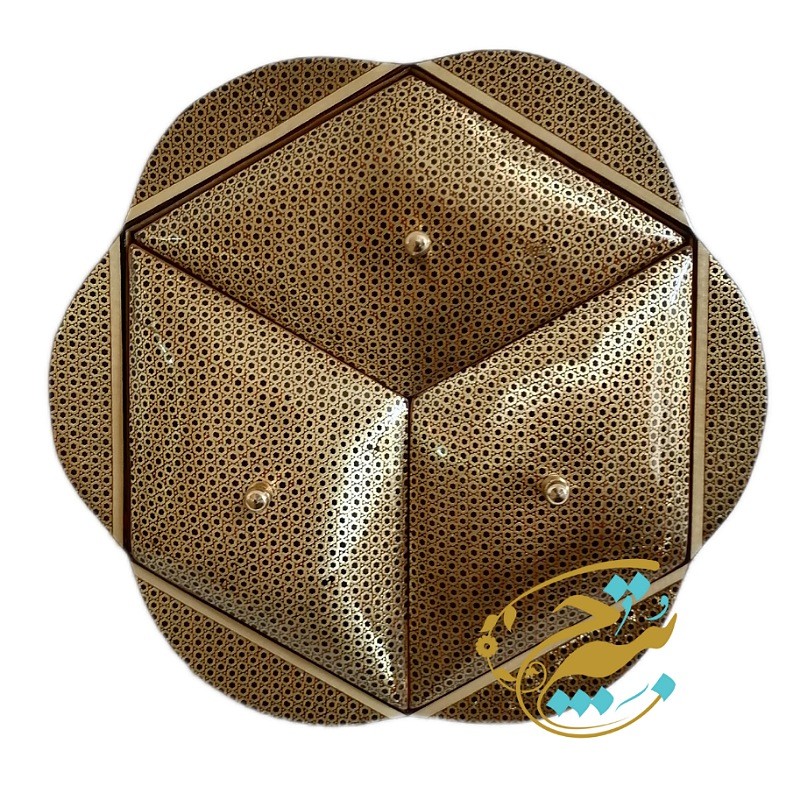 شکلات خوری خاتم کاری سه درب مدل سیمی طرح گلی شش ضلعی سایز 23در23
