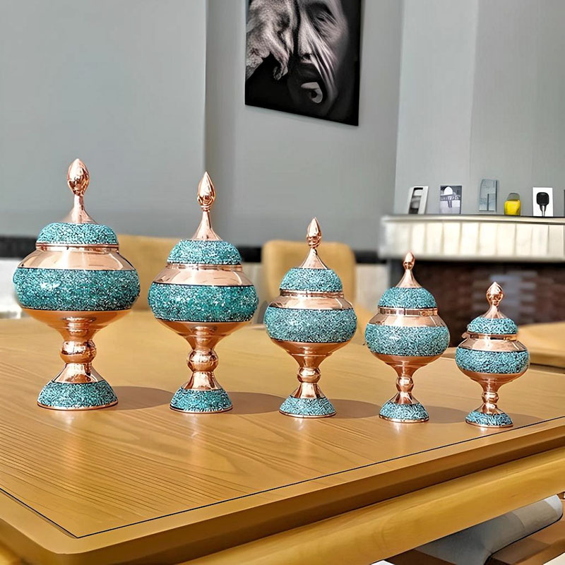 مقدار:800 گرم ابعاد:15×25 مناسب برای:تزیینی و قابل استفاده جنس:مس و فیروزه