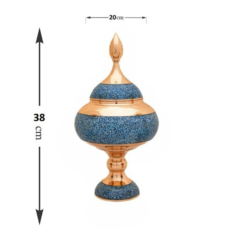 شکلات خوری متوسط فیروزه کوبی برای کسانی که قصد خرید صنایع دستی امضا دار را دارند؛ یکی از محصولات فیروزه کوبی منحصر به فرد است. تمامیه محصولات فیروزه کوبی دارای امضا استادکار است، فیروزه کوبها اصالت سنگ فیروزه نیشابور دارد که به همراه شناسنامه ارائه میشود. ارتفاع این شکلات خوری متوسط فیروزه کوب 27 سانتی متر است که بدنه مسی آن تماما از فلز مس خالص و درجه یک تهیه شده است.