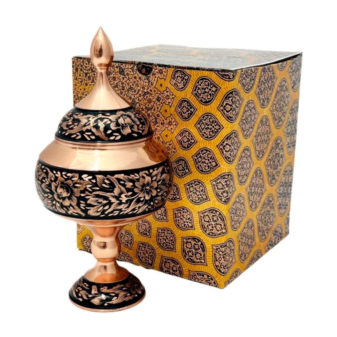 شکلات خوری مسی الماس تراش با جعبه سنتی