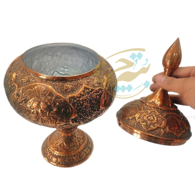☑️این شکلات خوری ها اثر دست هنرمندان قلمزن در اصفهان می باشد و نقوش زیبایی با قلم و چکش و با دقت و مهارت خاصی بر روی آن ایجاد شده است. ☑️قیمت آن ها با توجه به ظرافت و هنر به کار رفته تعیین میگردد، همچنین به ریزی و ظرافت گل و مرغ یا چهره و سایز آنها نیز بستگی دارد. ☑️سفارش انواع شکلات خوری قلمزنی شده با سایز دلخواه و سفارشی شما به صورت عمده ایی و خرده فروشی و با توجه به قیمت و بودجه شما مهیا می گردد .