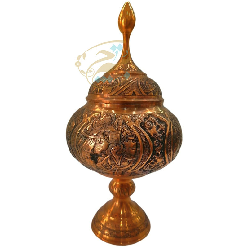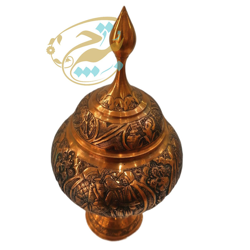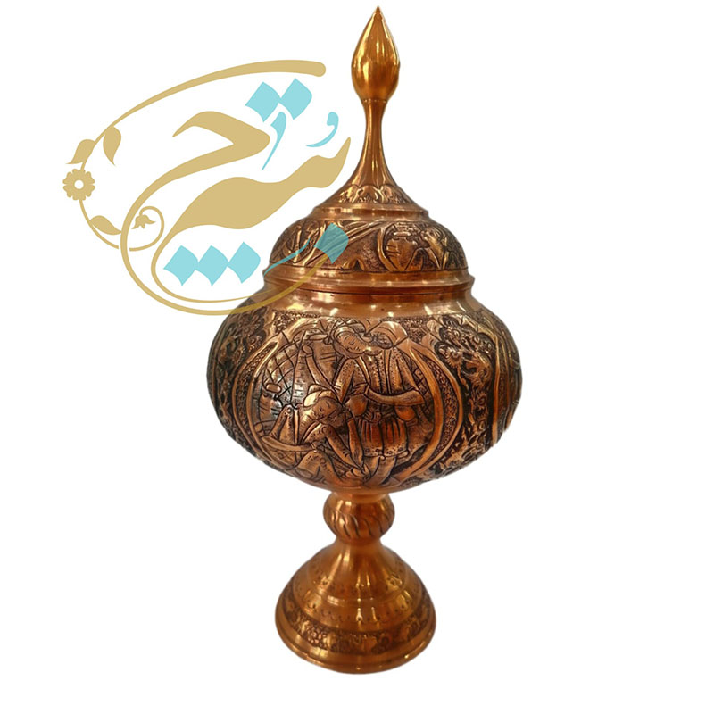 ارتفاع کلی این شکلات خوری زیبا 30 سانتی متر و ابعاد شکمی در بیشترین حالت 15 سانتی متر و قطر دهنه 10 سانتی متر می باشد.(به خاطر دست ساز بودن تمامی محصولات امکان اختلاف سایز اندکی وجود دارد. ) قلم کار شده بسیار ریز میباشد و دارای اصالت هنری است. (باکارهای بازاری سنجیده نشود.) نقوش گل و مرغ یا چهره که با ظرافت تمام روی سطح این شکلات خوری زیبا اجرا شدهاند، در کنار رنگ زیبای زمینه و خلاقیت هنرمند سازنده در استفاده از نقوش ایرانی، این شکلات خوری قلمزنی را به اثری خاص و جالبتوجه تبدیل کرده است. این شکلات خوری با ظاهر زیبایی که دارد، میتواند در مهمانیها بسیار به کارتان آید و شما را به میزبانی باسلیقه تبدیل کند. شکلاتخوری قلمزنی مدل پایهدار ارتفاع 25 سانتیمتر را هنرمند ان اصفهانی به نام طراحی و اجرا کرده اند. نقوش روی زمینهای از جنس فلز مس طراحی و با قلمهای بسیار ظریف ایجاد شدهاند. ارتفاع ظرف در حدود 25تا27 سانتیمتر است و به دلیل استفاده از فلز در ساخت، وزن 700_800 گرمی آن قابلتوجیه است. این ظرف اثری دستساز و زیباست که با طرحهای اصیل و ایرانی خود میتواند به خودی خود فضای خانهتان را تحتتاثیر قرار دهد. قلمزنی هنر اجرای نقوش بر اشیا فلزی است. هنری که در اجرای آن ظرافت، دقت و حوصله از مهمترین ملزومات هستند. نقش گل و مرغ و چهره همچنان بهعنوان رایجترین نقوش هنر قلمزنی روی بسیاری از آثار فلزی اجرا میشود و از محبوبترین طرحهاست. شیوهی کار در هنری قلمزنی به این صورت است که ابتدا هنرمند قلمزن طرحی را که باید اجرا شود، با مداد روی سطح فلز ترسیم میکند. در مرحلهی بعد داخل یا بیرون کار را با قیر مذاب پر میکنند و بعد از اینکه قیر سفت شد، با استفاده از چکش و قلم، شروع به اجرای طرح میکنند. ریختن قیر به منظور کجنشدن ظرف یا جلوگیری از شکستن آن بر اثر ضربات چکش و قلم انجام میشود. قلمها انواع گوناگون دارند و بر اساس طرح و نحوهی کار به شکلهای مختلف ساخته میشوند. هنرمندان چیرهدست معمولا قلمهای مورداستفادهشان را بر اساس نوع نیازی که دارند، خودشان میسازند. ظروف یا صفحههای مسطح مسی یا برنجی رایجترین زمینهها برای اجرای هنر قلمزنی هستند و گاهی با لعابی از قلع پوشانده میشوند. لطفاً قبل از سفارش طرح قندان مسی مورد نظرتون رو انتخاب کنید در غیر اینصورت یکی از قندان های زیبای تقریبا مشابه به صورت رندوم برای شما مونتاژ و ارسال می شود. پس از دریافت محصول، حتما در حضور مامور پست آن را چک کنید، در غیر اینصورت هرگونه آسیب فیزیکی به محصول برعهده فروشگاه نمی باشد.