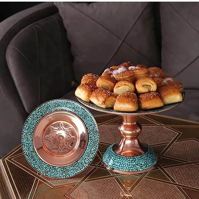 شیرینیخوری فیروزهکوب چیست؟ شیرینیخوری فیروزهکوب یک ظرف پذیرایی است که از مس ساخته شده و با سنگهای فیروزه تزیین میشود. این هنر، ترکیبی از هنر مسگری و فیروزهکوبی است که در اصفهان به عنوان یک هنر سنتی و اصیل شناخته میشود.