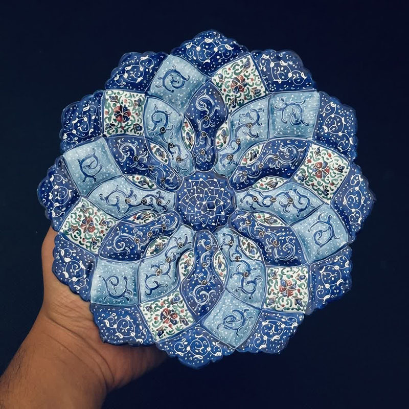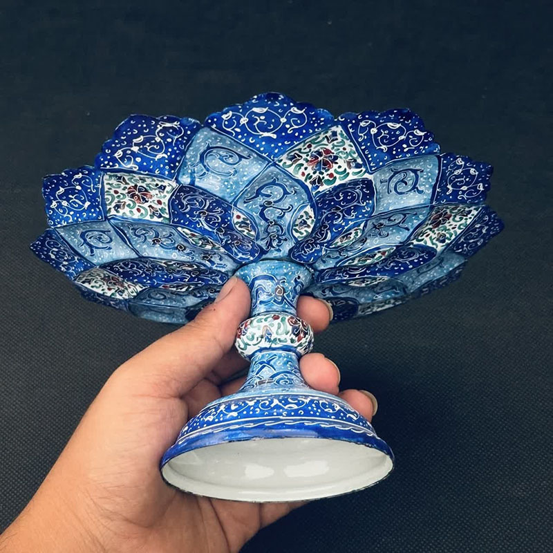 از پودر رنگ های مخصوص میناکاری برای نقاشی بر روی لعاب استفاده می گردد تا پس از حرارت در کوره بصورت دائمی ماندگار گردند. طرح های نقاشی شده روی ظروف میناکاری متنوع در نظر گرفته میشود تا حس یکتایی این آثار بصورت یک اثر هنری حفظ گردد. ظروف میناکاری لعاب کاری و سپس در کوره حرارت دیده اند. با توجه به این موضوع در برابر آب و رطوبت مقاوم است . شما می توانید براحتی ظروف میناکاری روی مس را با آب بشویید و یا در آب و هوای شرجی شهرهای شمالی و جنوبی از آن بهره ببرید. ظروف میناکاری اصفهان هم بصورت تزئینی و هم بصورت کاربردی مورد استفاده قرار می گیرد. ظروف میناکاری حس و حال بسیار خوبی به میزهای پذیرایی شما خواهد داد. محصولات میناکاری اثر دست هنرمندان با ذوق اصفهانی است که متناسب با آداب و رسوم سنتی ایرانی تولید می گردد. قبل از سفارش طرح مورد نظرتون رو استعلام بگیرید و با اطمینان خرید کنید.