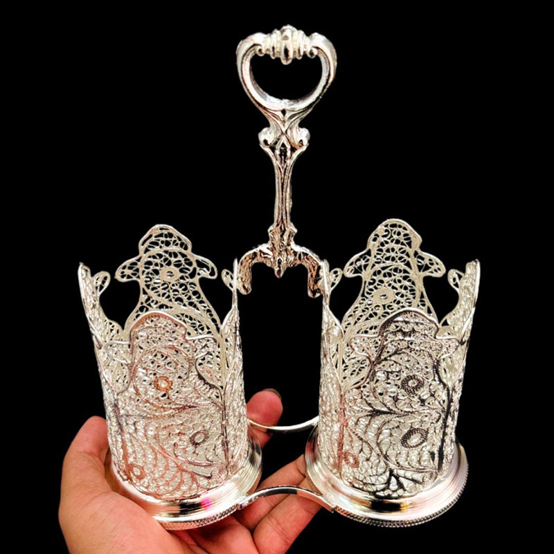خانه / صنایع فلزی / ملیله کاری / سایر محصولات ملیله کاری / ظروف ملیله کاری جا قاشق لیوانی