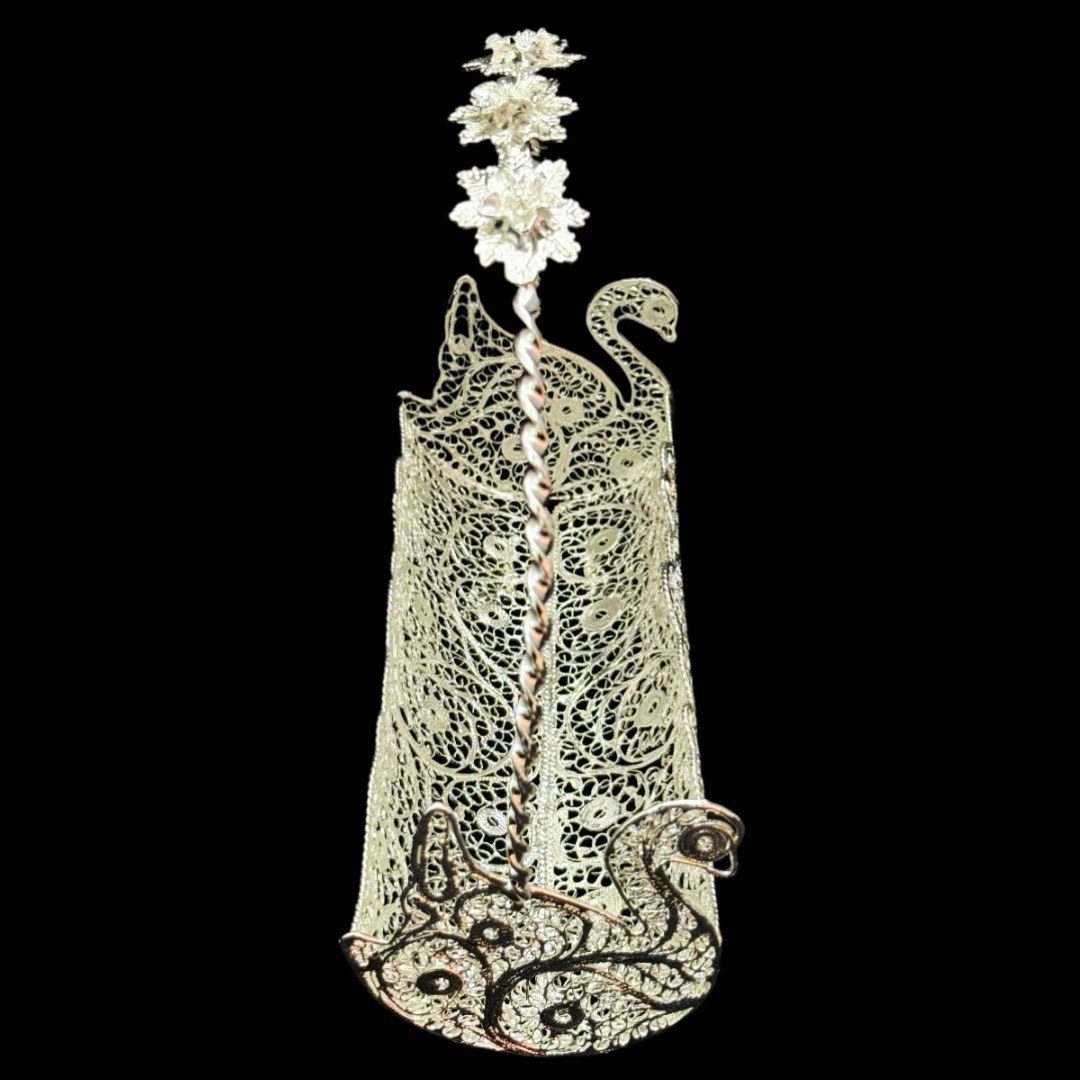 ظروف ملیله کاری جا قاشق چنگالی – ملیلهکاری اصفهان، اثری دستساز از هنرمندان اصفهانی با ظرافت بالای ملیلهکاری، مناسب برای دکوراسیون لوکس و هدیهای ماندگار.