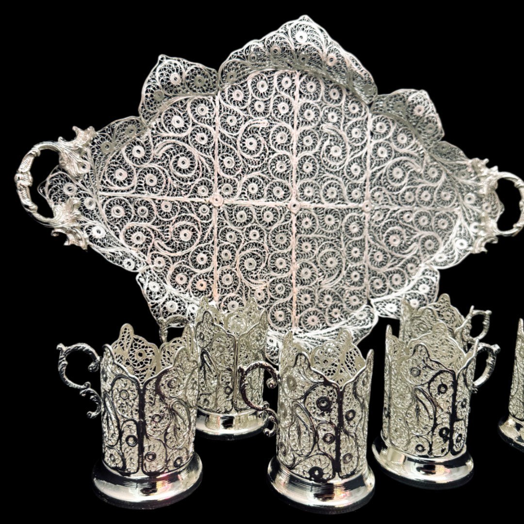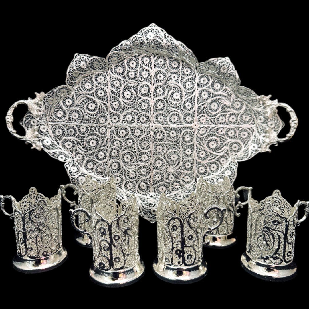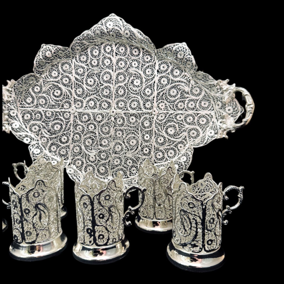 ظروف ملیله کاری ست پذیرایی چای خوری 11 | هنر ملیلهکاری اصفهان