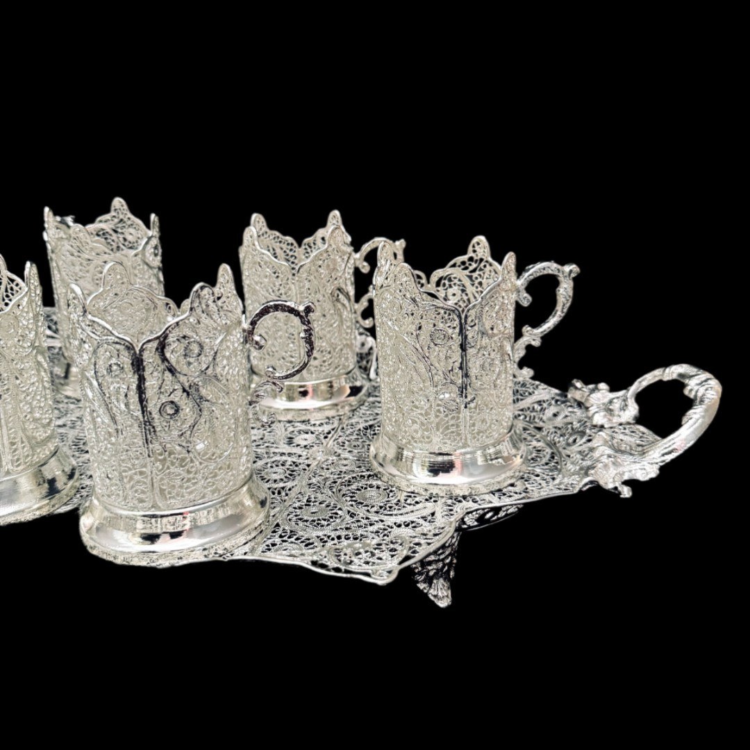 ظروف ملیله کاری ست پذیرایی چای خوری 11 – ملیلهکاری اصفهان، اثری دستساز از هنرمندان اصفهانی با ظرافت بالای ملیلهکاری، مناسب برای دکوراسیون لوکس و هدیهای ماندگار.