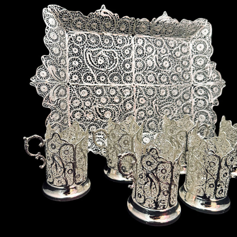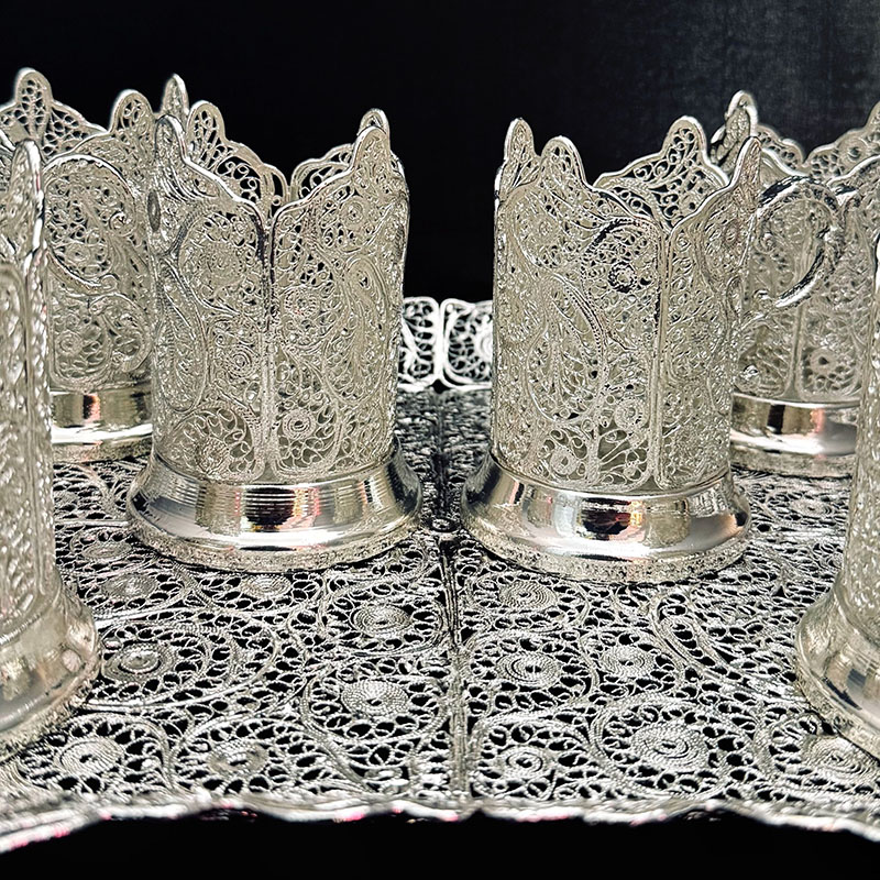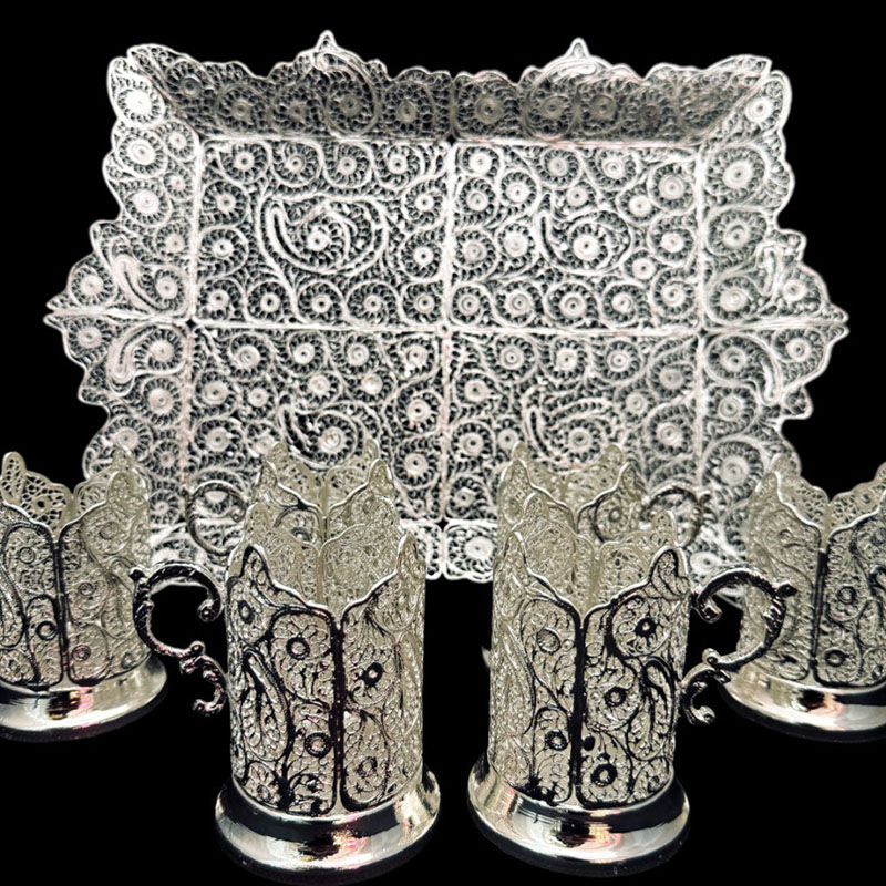 ظروف ملیله کاری ست پذیرایی چای خوری 5