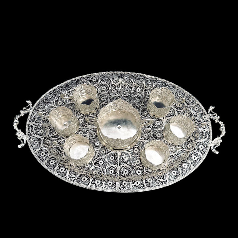 خانه / صنایع فلزی / ملیله کاری / انواع ست ملیله کاری / ظروف ملیله کاری ست پذیرایی چای خوری 2