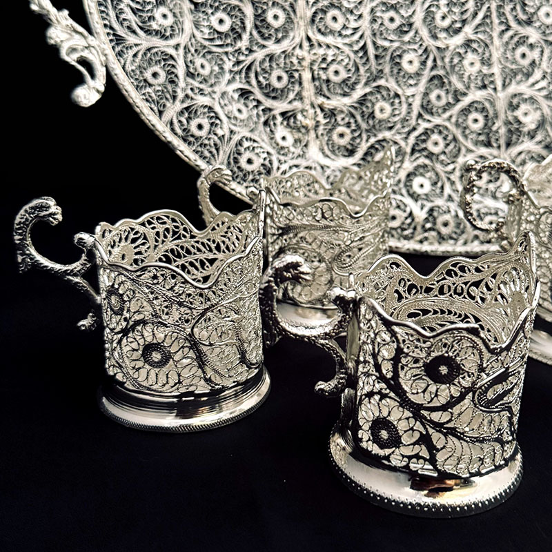 ظروف ملیله کاری ست پذیرایی چای خوری 4