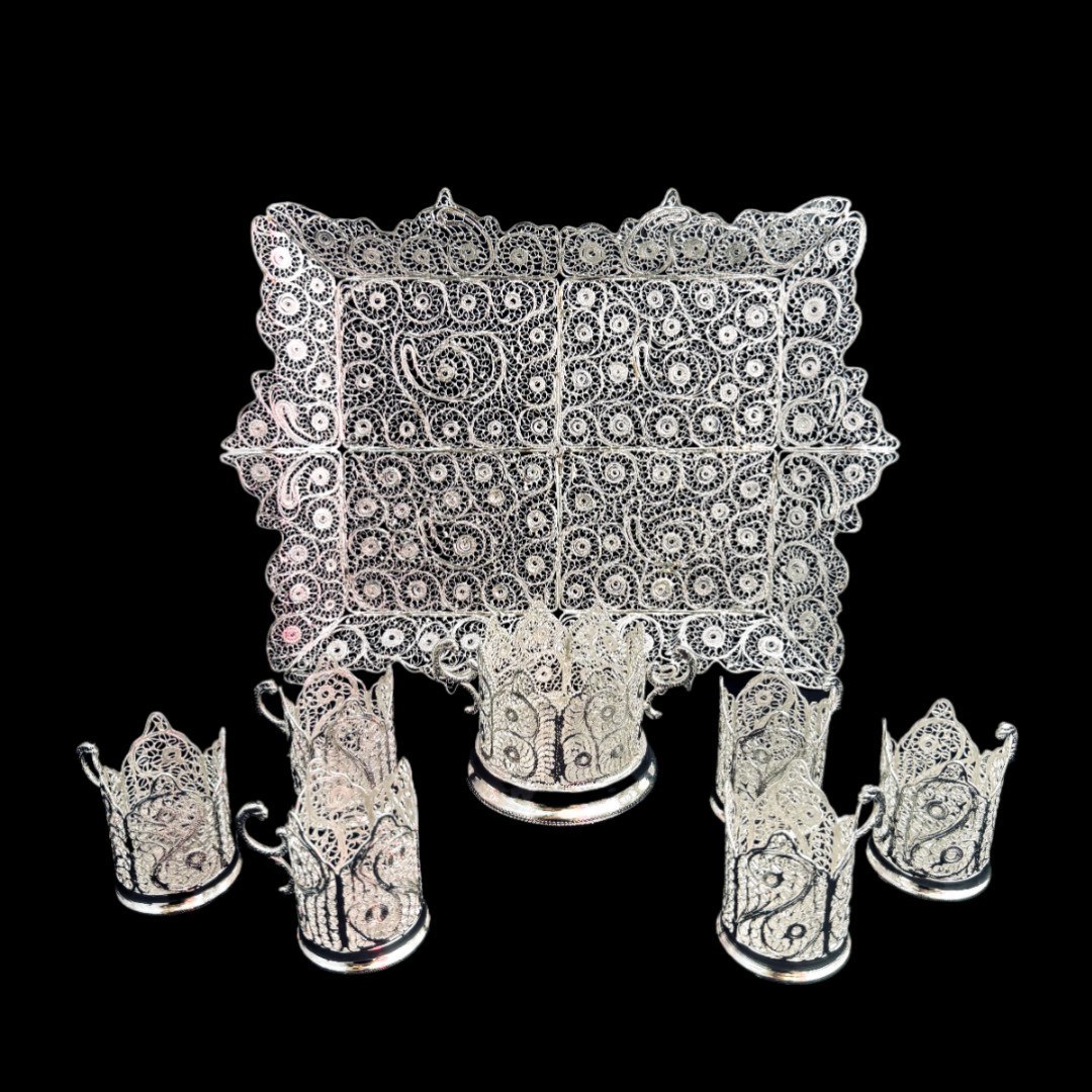 ظروف ملیله کاری ست پذیرایی چای خوری 5