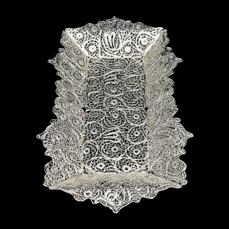 ملیله‌کاری، هنر ظریف و زیبای ساخت اشیاء تزئینی از مفتول‌های نازک مس با روکش نقره است که ریشه در تاریخ و فرهنگ اصفهان دارد. محصولات ملیله‌کاری با طرح‌های پیچیده و چشم‌نواز، جلوه‌ای خاص به دکوراسیون منزل می‌بخشند و می‌توانند به عنوان هدیه‌ای ارزشمند مورد استفاده قرار گیرند. کیفیت ملیله‌کاری تولیدی بُته چی به دلیل استفاده از مواد اولیه مرغوب و دقت بالای هنرمندان، از کیفیت بالایی برخوردار است و می‌تواند سال‌ها زیبایی خود را حفظ کند. ساخت ظروف ملیله‌کاری نیاز به مهارت و دقت بالایی دارد. در ابتدا، فلز مورد استفاده برای ساخت ظروف ملیله کاری به رشته‌های نازک و بسیار دقیق تبدیل می‌شود. سپس این رشته‌ها با دستان هنرمند به اشکال پیچیده و ظریف بافته می‌شوند. این رشته‌های فلزی پس از بافتن، به شکل یک ظرف با جزئیات دقیق و ظریف درمی‌آیند که اغلب با الگوهای گل و گیاه یا طرح‌های هندسی زینت داده می‌شوند. برای تکمیل کار، معمولاً این ظروف با استفاده از سنگ‌های قیمتی یا جواهرات دیگر تزئین می‌شوند تا جلوه‌ای خاص و نفیس پیدا کنند. با خرید ظروف ملیله کاری اصفهان، شما نه تنها یک شیء زیبا و دکوری را به خانه خود اضافه می‌کنید، بلکه از هنر و هنرمندان ایرانی نیز حمایت می‌کنید. به علت دست ساز بودن تمامی محصولات امکان اختلاف سایز اندکی وجود دارد.