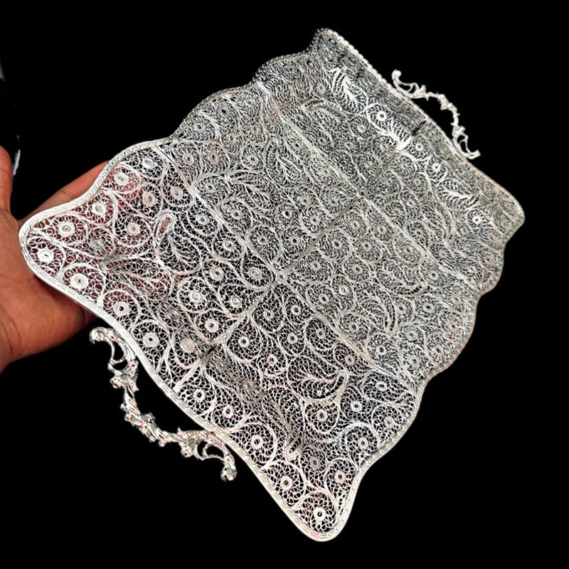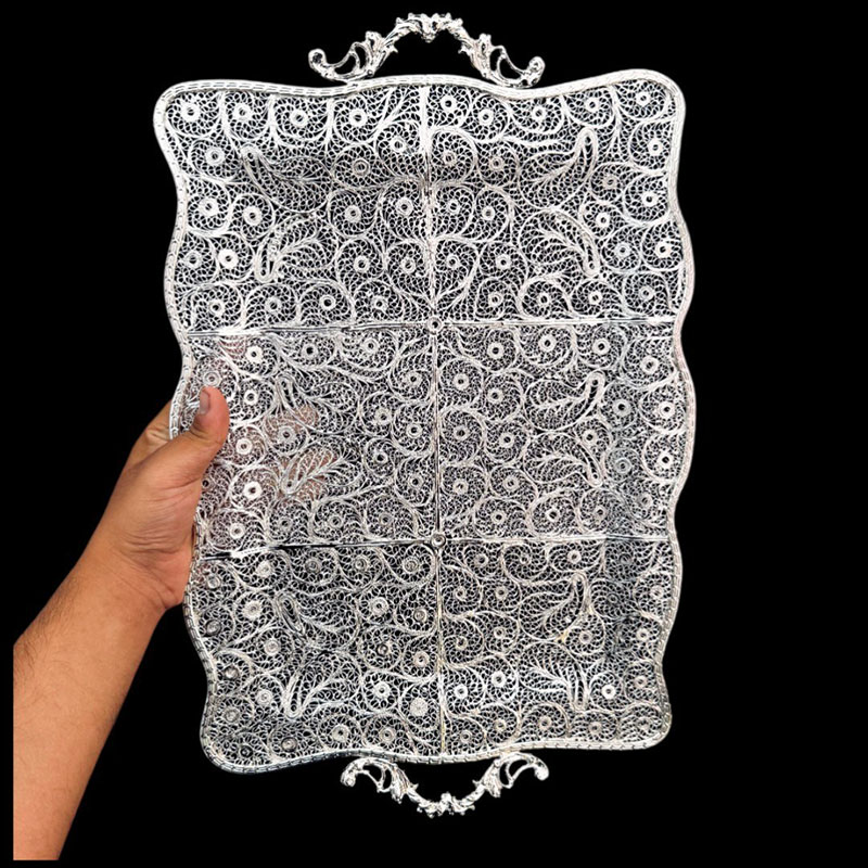 ملیلهکاری، هنر ظریف و زیبای ساخت اشیاء تزئینی از مفتولهای نازک مس با روکش نقره است که ریشه در تاریخ و فرهنگ اصفهان دارد. محصولات ملیلهکاری با طرحهای پیچیده و چشمنواز، جلوهای خاص به دکوراسیون منزل میبخشند و میتوانند به عنوان هدیهای ارزشمند مورد استفاده قرار گیرند. کیفیت ملیلهکاری تولیدی بُته چی به دلیل استفاده از مواد اولیه مرغوب و دقت بالای هنرمندان، از کیفیت بالایی برخوردار است و میتواند سالها زیبایی خود را حفظ کند. ساخت ظروف ملیلهکاری نیاز به مهارت و دقت بالایی دارد. در ابتدا، فلز مورد استفاده برای ساخت ظروف ملیله کاری به رشتههای نازک و بسیار دقیق تبدیل میشود. سپس این رشتهها با دستان هنرمند به اشکال پیچیده و ظریف بافته میشوند. این رشتههای فلزی پس از بافتن، به شکل یک ظرف با جزئیات دقیق و ظریف درمیآیند که اغلب با الگوهای گل و گیاه یا طرحهای هندسی زینت داده میشوند. برای تکمیل کار، معمولاً این ظروف با استفاده از سنگهای قیمتی یا جواهرات دیگر تزئین میشوند تا جلوهای خاص و نفیس پیدا کنند. با خرید ظروف ملیله کاری اصفهان، شما نه تنها یک شیء زیبا و دکوری را به خانه خود اضافه میکنید، بلکه از هنر و هنرمندان ایرانی نیز حمایت میکنید. به علت دست ساز بودن تمامی محصولات امکان اختلاف سایز اندکی وجود دارد.