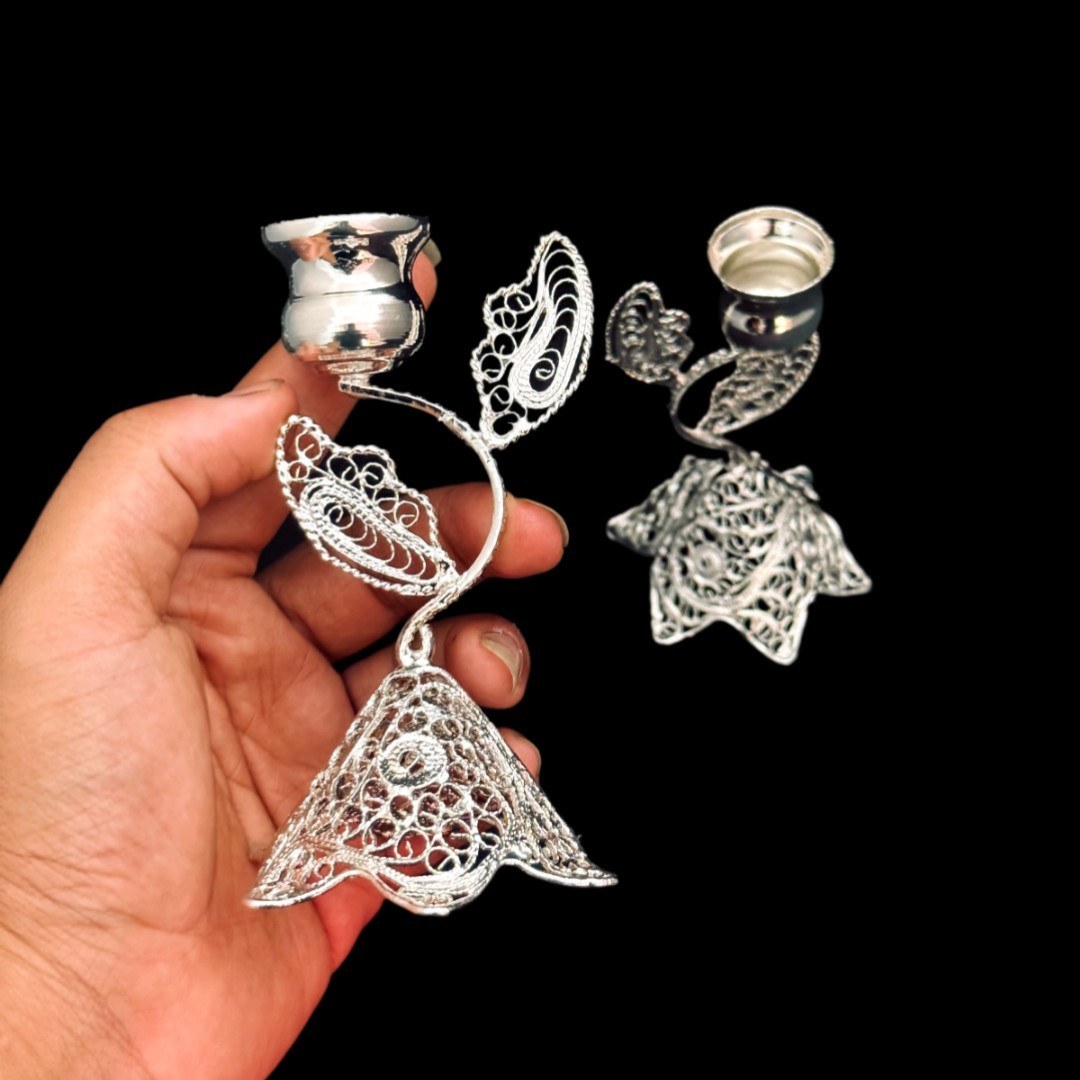ظروف ملیله کاری شمعدان اشکی کوچک جفتی | هنر ملیلهکاری اصفهان