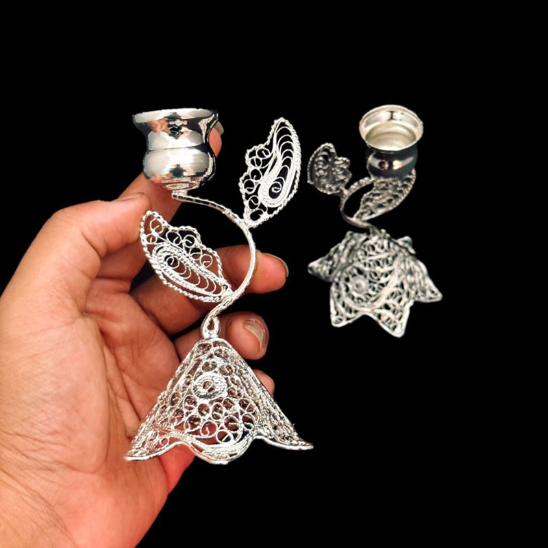 ظروف ملیله کاری شمعدان اشکی کوچک جفتی
