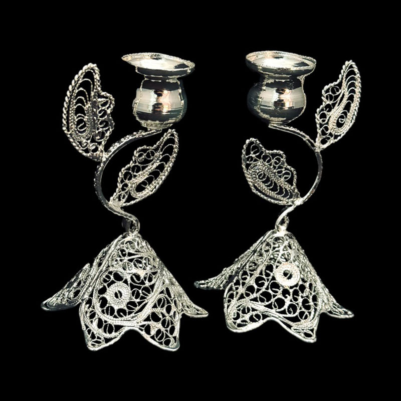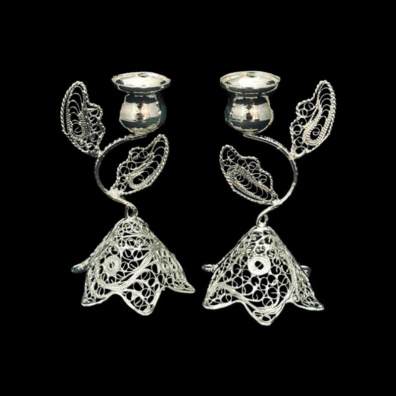 خانه / صنایع فلزی / ملیله کاری / سایر محصولات ملیله کاری / ظروف ملیله کاری شمعدان اشکی کوچک جفتی