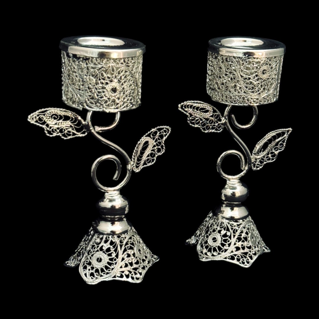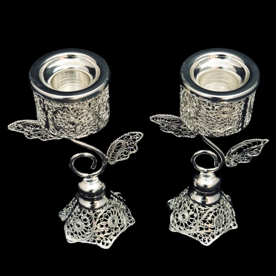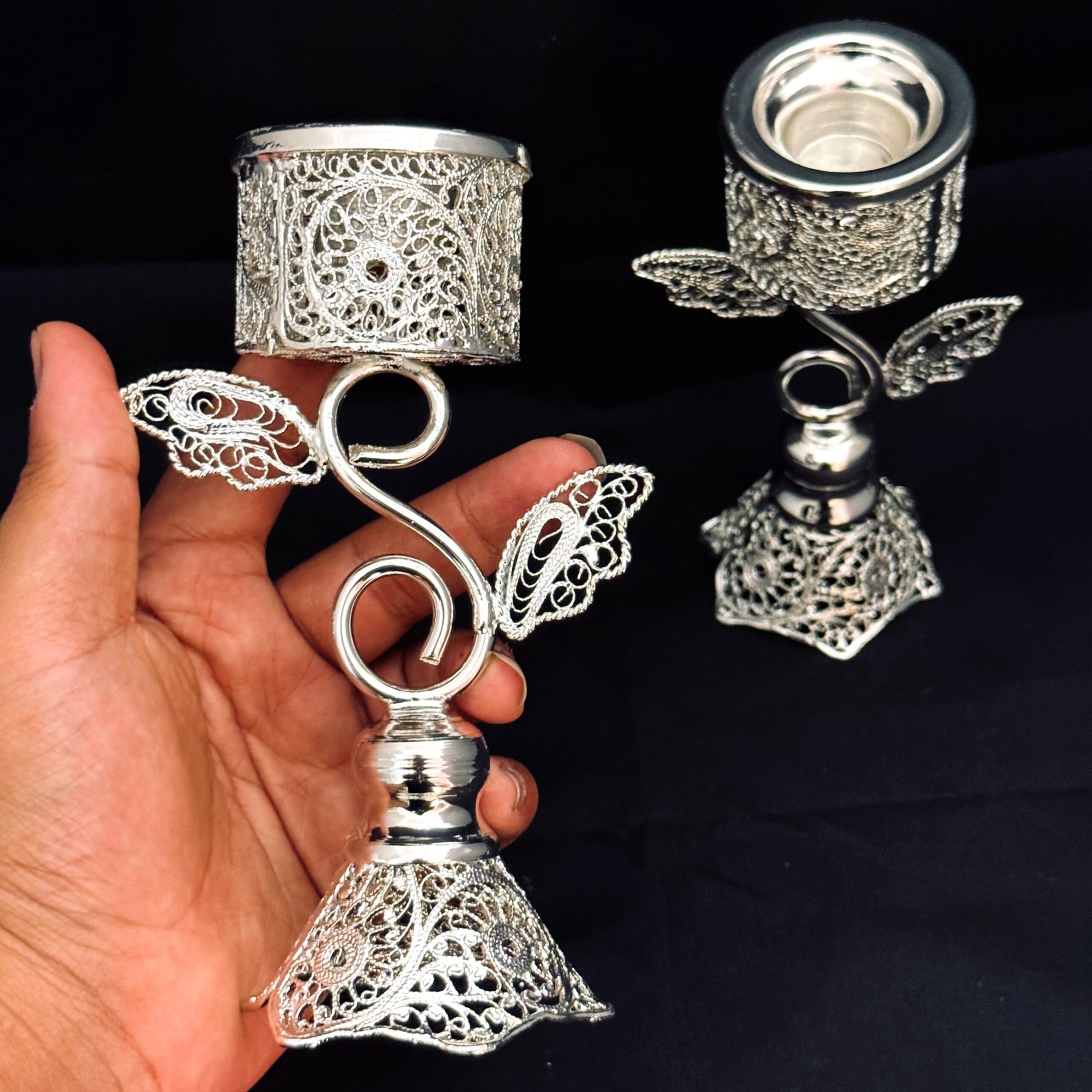 ظروف ملیله کاری شمعدان طرح اس – ملیلهکاری اصفهان، اثری دستساز از هنرمندان اصفهانی با ظرافت بالای ملیلهکاری، مناسب برای دکوراسیون لوکس و هدیهای ماندگار.