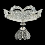 ظروف ملیله کاری شیرینی خوری لبه جدا بزرگ – ملیلهکاری اصفهان، اثری دستساز از هنرمندان اصفهانی با ظرافت بالای ملیلهکاری، مناسب برای دکوراسیون لوکس و هدیهای ماندگار.