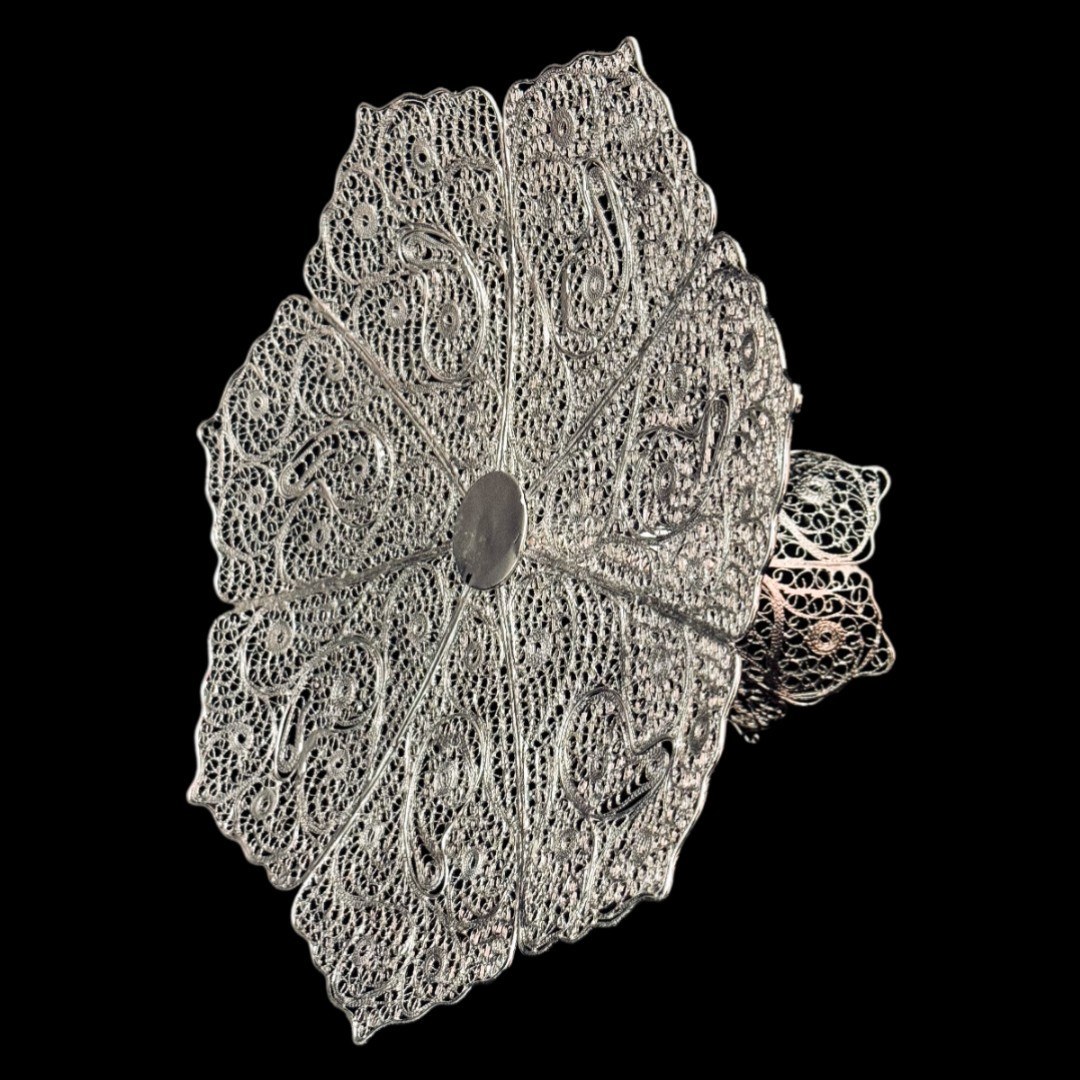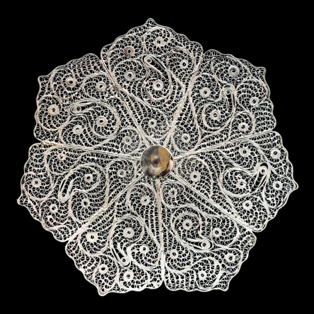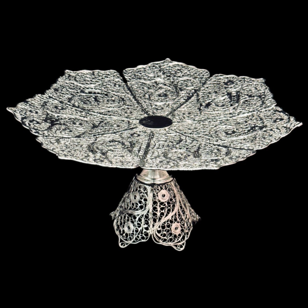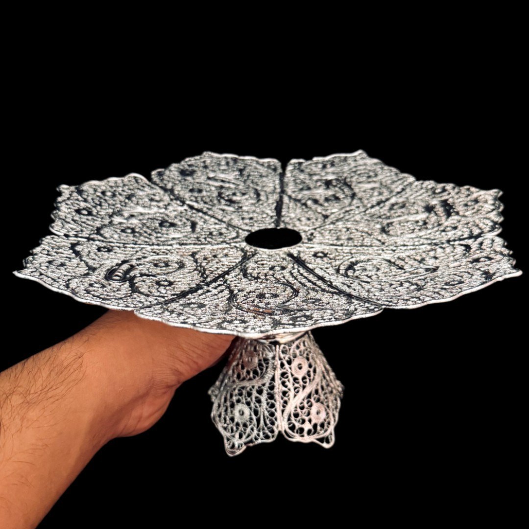 ظروف ملیله کاری شیرینی خوری 6 ضلعی بزرگ – ملیلهکاری اصفهان، اثری دستساز از هنرمندان اصفهانی با ظرافت بالای ملیلهکاری، مناسب برای دکوراسیون لوکس و هدیهای ماندگار.
