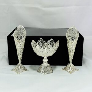ظروف ملیله کاری اصفهان، اثری هنری و نفیس از دستان هنرمندان چیره دست اصفهانی است. این ظروف زیبا، با ظرافت و دقت فراوان ملیله کاری شده و جلوه‌ای بی‌نظیر به دکوراسیون منزل شما می‌بخشد. به همراه ضمانت نامه 48 ماهه ارائه میشود‌ و دارای شناسنامه هنری است.