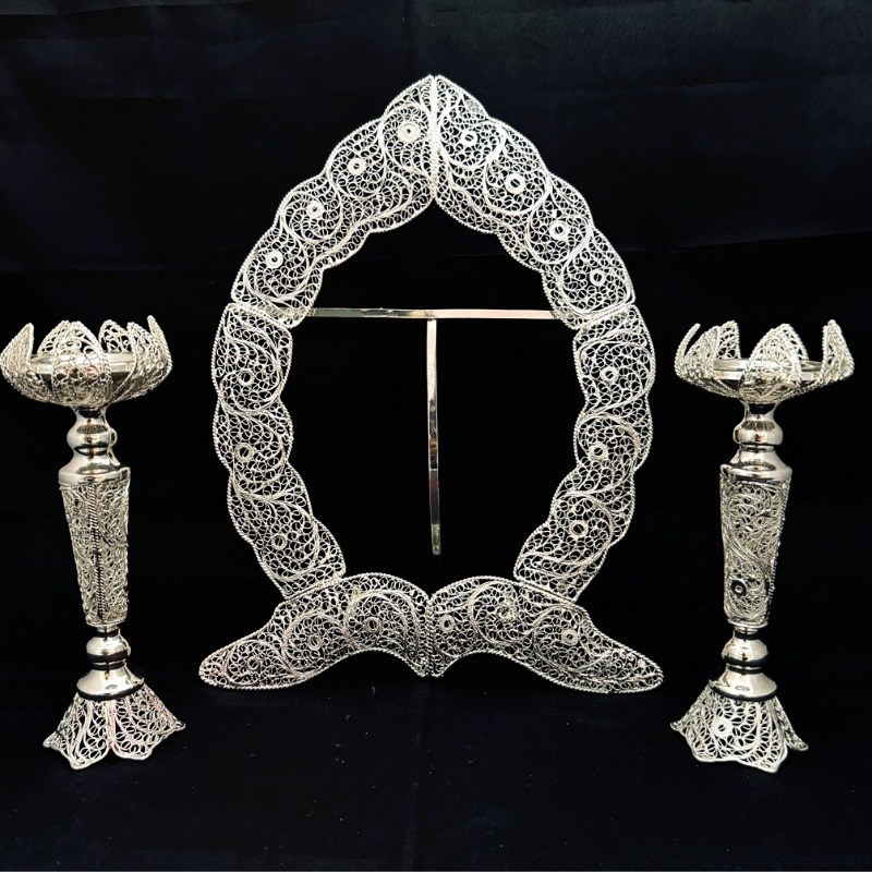 ظروف ملیله کاری قاب بیضی شماره پنج و شمعدان قلمی
