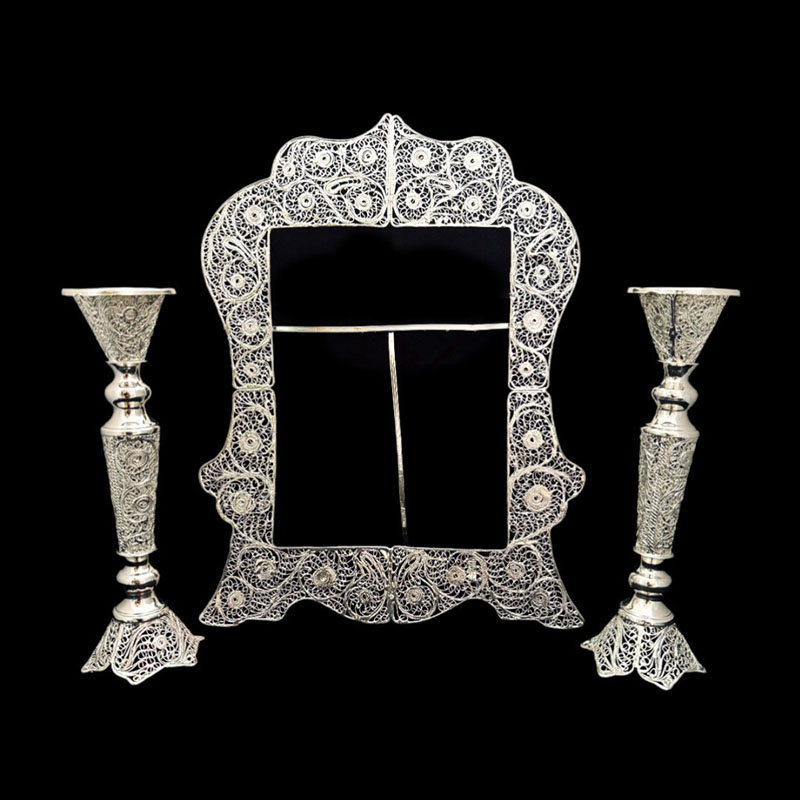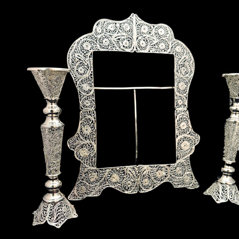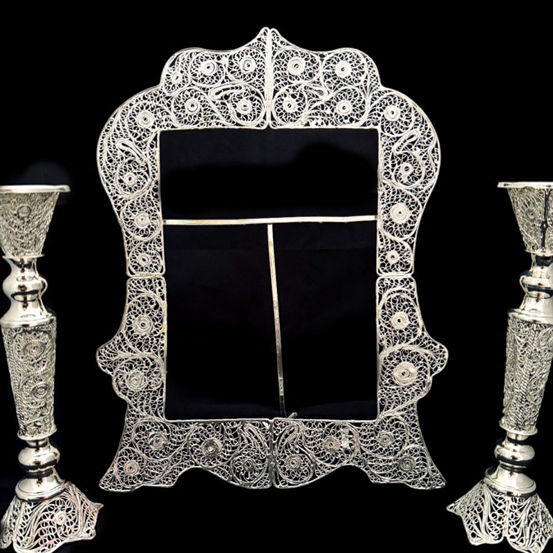 ظروف ملیله کاری قاب مستطیل شماره چهار شمعدان تک سر کوچیک