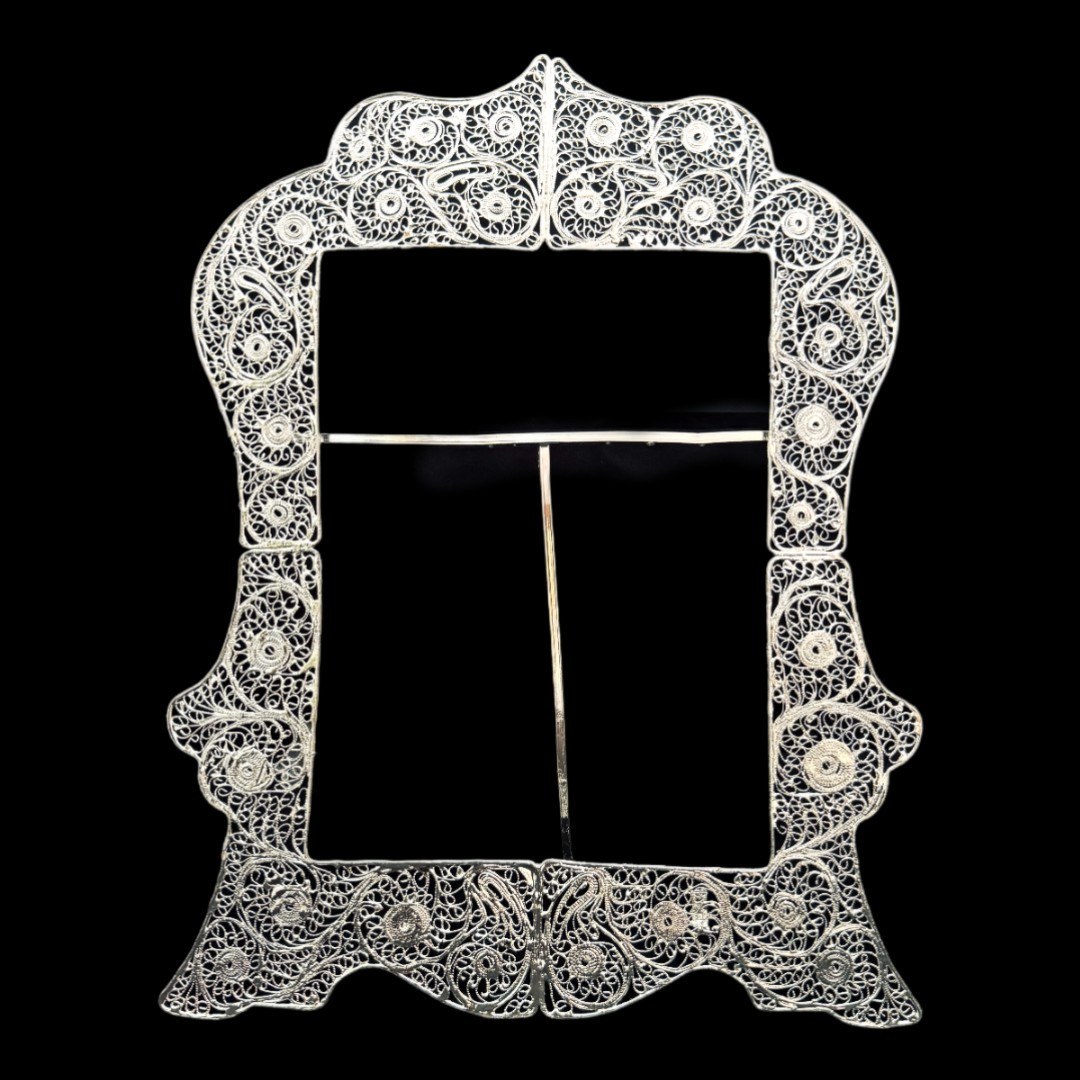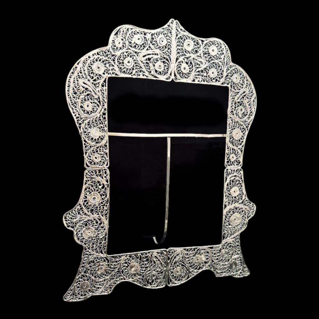 ظروف ملیله کاری قاب مستطیل شماره چهار – ملیلهکاری اصفهان، اثری دستساز از هنرمندان اصفهانی با ظرافت بالای ملیلهکاری، مناسب برای دکوراسیون لوکس و هدیهای ماندگار.