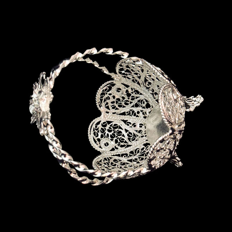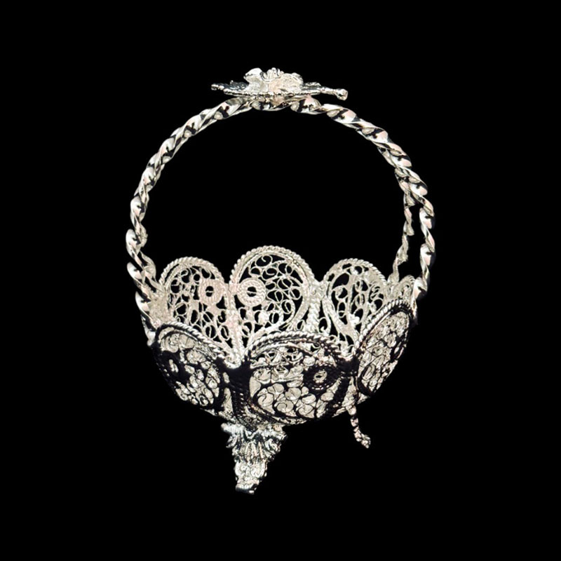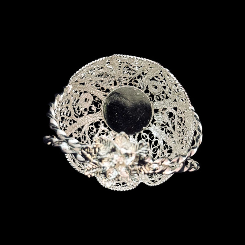 آجیل خوری نقره ملیله کاری شده لب گرد به همراه جعبه مخمل