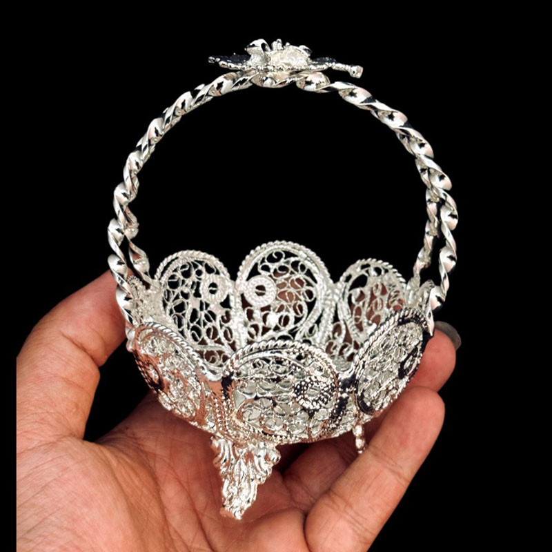 ظروف ملیله کاری کاسه آجیل خوری نقلی لبه گرد زنبیل