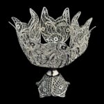 ظروف ملیله کاری کاسه اناری – ملیلهکاری اصفهان، اثری دستساز از هنرمندان اصفهانی با ظرافت بالای ملیلهکاری، مناسب برای دکوراسیون لوکس و هدیهای ماندگار.