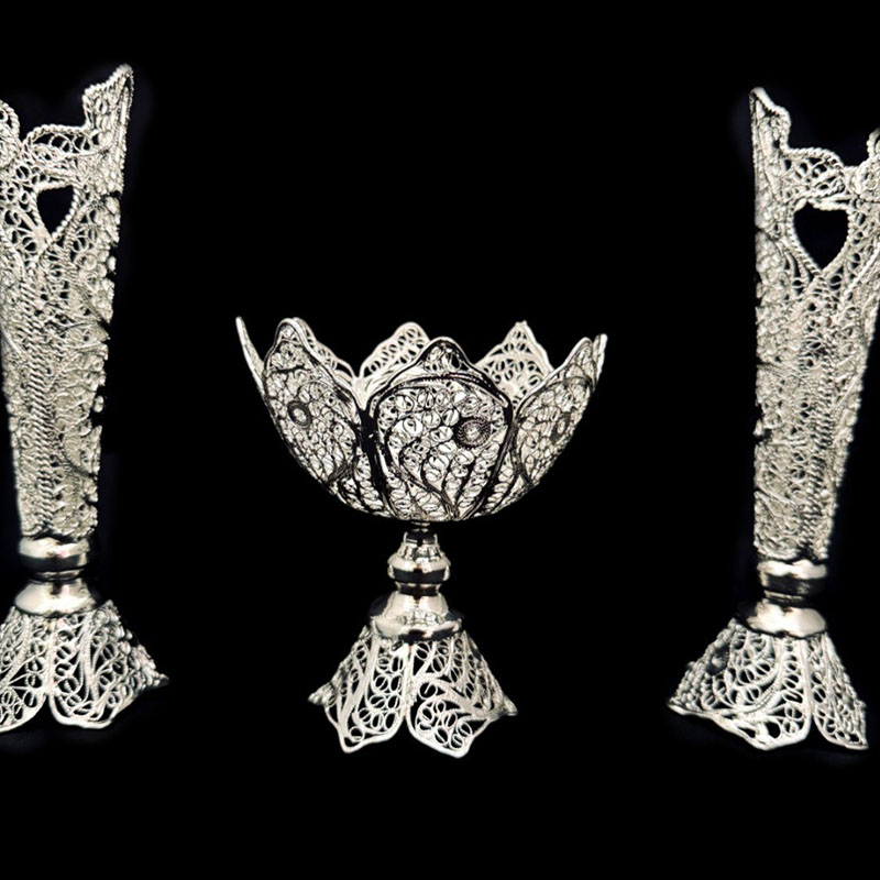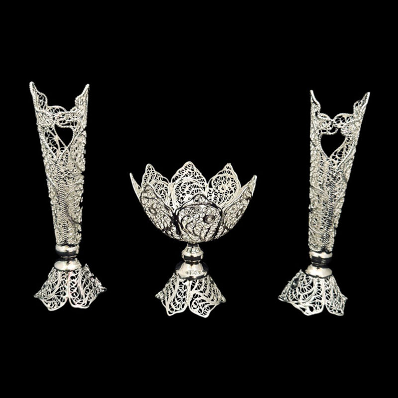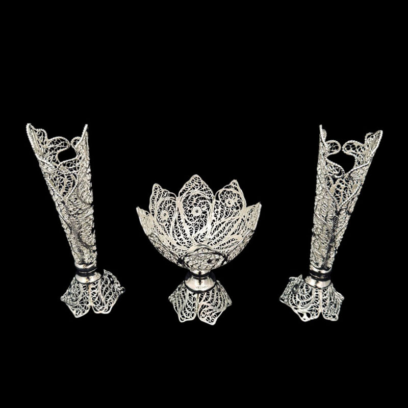 ست هدیه ظروف نقره ملیله کاری قندان و گلدان 18