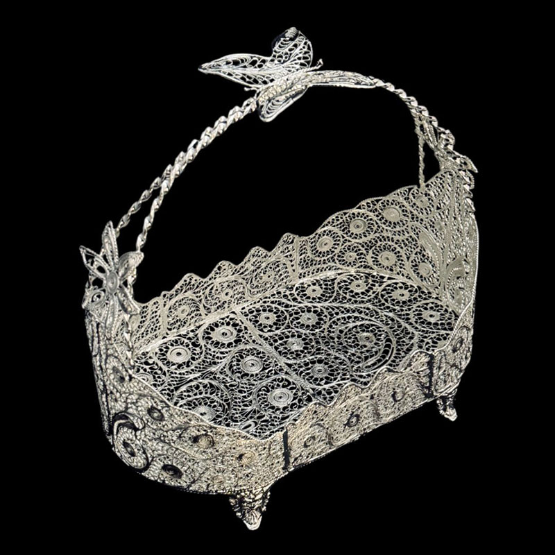 ملیله‌کاری، هنر ظریف و زیبای ساخت اشیاء تزئینی از مفتول‌های نازک مس با روکش نقره است که ریشه در تاریخ و فرهنگ اصفهان دارد. محصولات ملیله‌کاری با طرح‌های پیچیده و چشم‌نواز، جلوه‌ای خاص به دکوراسیون منزل می‌بخشند و می‌توانند به عنوان هدیه‌ای ارزشمند مورد استفاده قرار گیرند. کیفیت ملیله‌کاری تولیدی بُته چی به دلیل استفاده از مواد اولیه مرغوب و دقت بالای هنرمندان، از کیفیت بالایی برخوردار است و می‌تواند سال‌ها زیبایی خود را حفظ کند. ساخت ظروف ملیله‌کاری نیاز به مهارت و دقت بالایی دارد. در ابتدا، فلز مورد استفاده برای ساخت ظروف ملیله کاری به رشته‌های نازک و بسیار دقیق تبدیل می‌شود. سپس این رشته‌ها با دستان هنرمند به اشکال پیچیده و ظریف بافته می‌شوند. این رشته‌های فلزی پس از بافتن، به شکل یک ظرف با جزئیات دقیق و ظریف درمی‌آیند که اغلب با الگوهای گل و گیاه یا طرح‌های هندسی زینت داده می‌شوند. برای تکمیل کار، معمولاً این ظروف با استفاده از سنگ‌های قیمتی یا جواهرات دیگر تزئین می‌شوند تا جلوه‌ای خاص و نفیس پیدا کنند. با خرید ظروف ملیله کاری اصفهان، شما نه تنها یک شیء زیبا و دکوری را به خانه خود اضافه می‌کنید، بلکه از هنر و هنرمندان ایرانی نیز حمایت می‌کنید. به علت دست ساز بودن تمامی محصولات امکان اختلاف سایز اندکی وجود دارد.